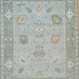 Blue Wool Oushak Rug, Handwoven Floral Turkish Rug AR_3050