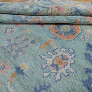 Peach Oushak Rug, Blue & Gold Wool Rug, Neutral Decor AR_3052
