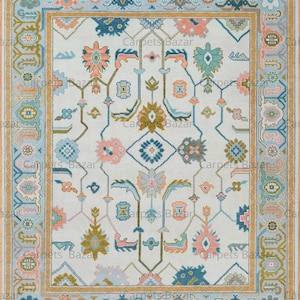 Like the Blue Hour, this handmade Oushak area rug has the most beautiful colors. The handwoven wool Turkish Rug has a central silvery-blue field with a rust-hued border. The perfect carpet for farmhouse or coastal home décor, the area rug has while floral and abstract motifs in green, rust, cream and blue. Hand-knotted by skilled artisans in premium wool, this Turkish area rug features about 20–40 knots per square inch, making it plush and cloud-soft underfoot while maintaining durability. With its 100% cut-pile construction (no loops), this rug is shedding-free, pet-friendly, and easy to maintain with regular vacuuming and spot cleaning.