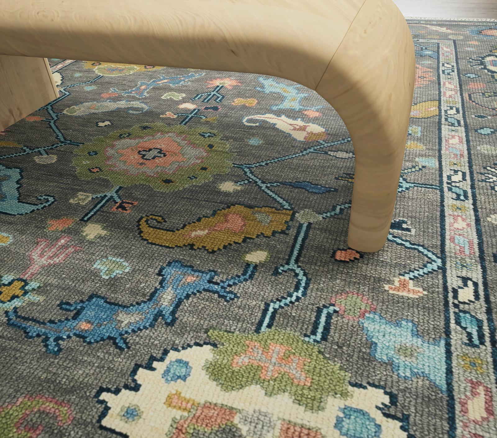 Gray Oushak Rug, Large Floral Wool Carpet, Modern Turkish Design AR_3605