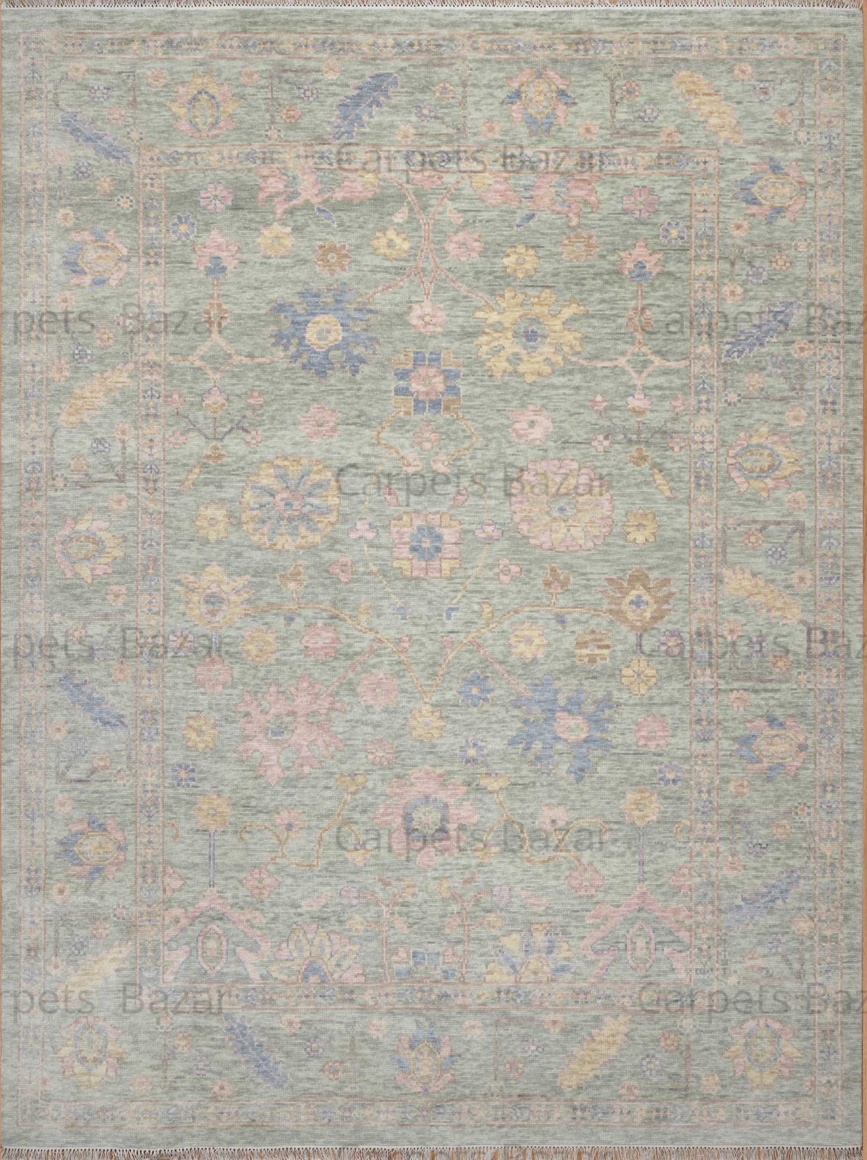 Handwoven Oushak Wool Rug, Faded Gray Beige, Pastel Accent Decor ARN_07