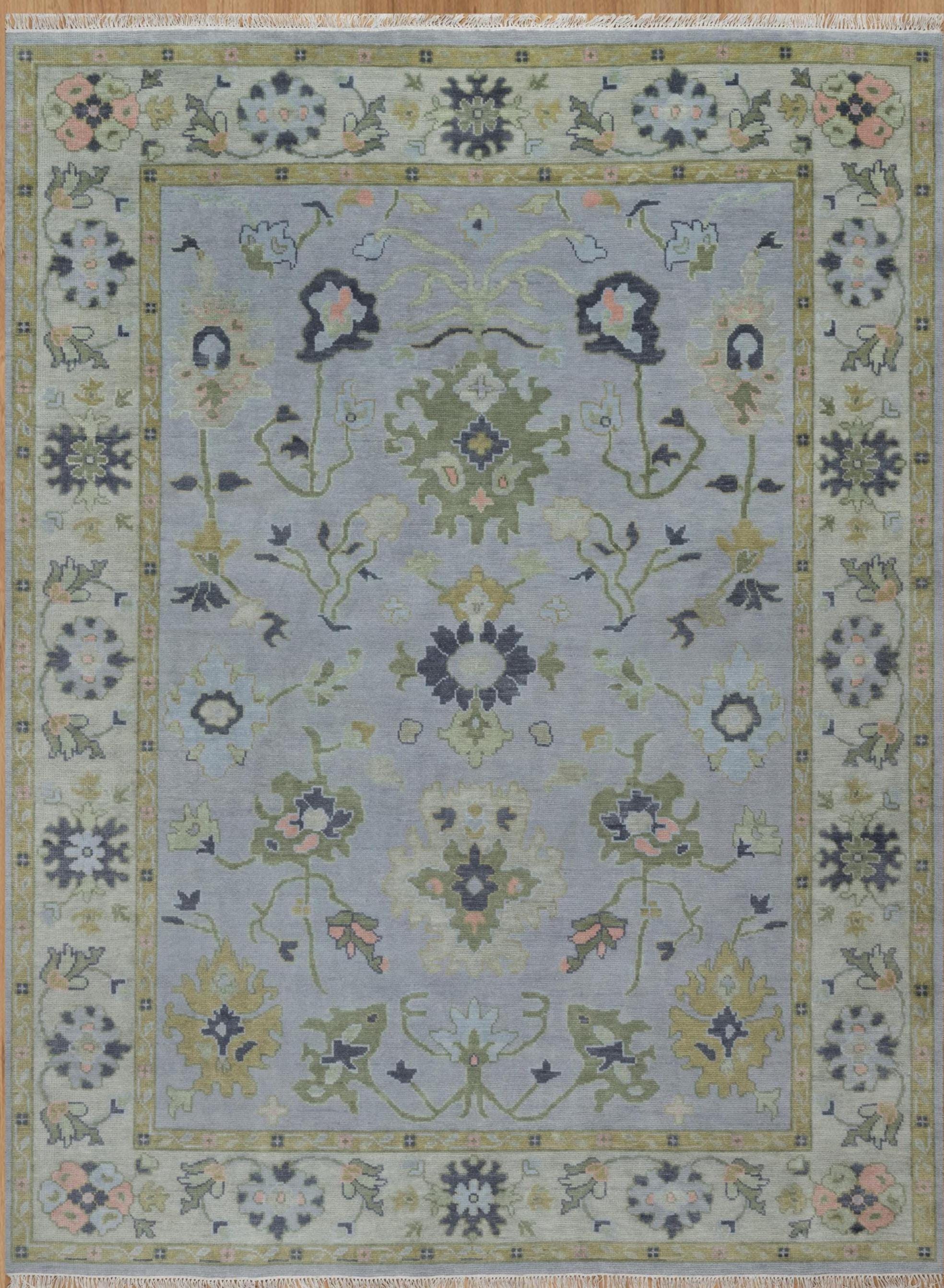 The soft, pastel gray hues of the modern oushak rug form a gentle canvas. Tranquil and elegant, the gray rug creates a calming ambiance in your home or office. To add a touch of natural freshness, the green and blue rug features delicate accents of pink, reminiscent of lush botanical gardens and verdant meadows. The seamless fusion of these gentle shades instills a sense of serenity, making the handknotted rug an ideal addition to bedrooms, living rooms, or meditation spaces. Crafted with premium quality wool, the handmade contemporary rug feature 20 to 40 knots per square inch, which make the Oushak rug plush soft and buttery. It's not too dense, 100% cut-pile and doesn't shed so the wool rug is perfect for homes with pets and little ones. Extremely durable, the oushak is easy to maintain.