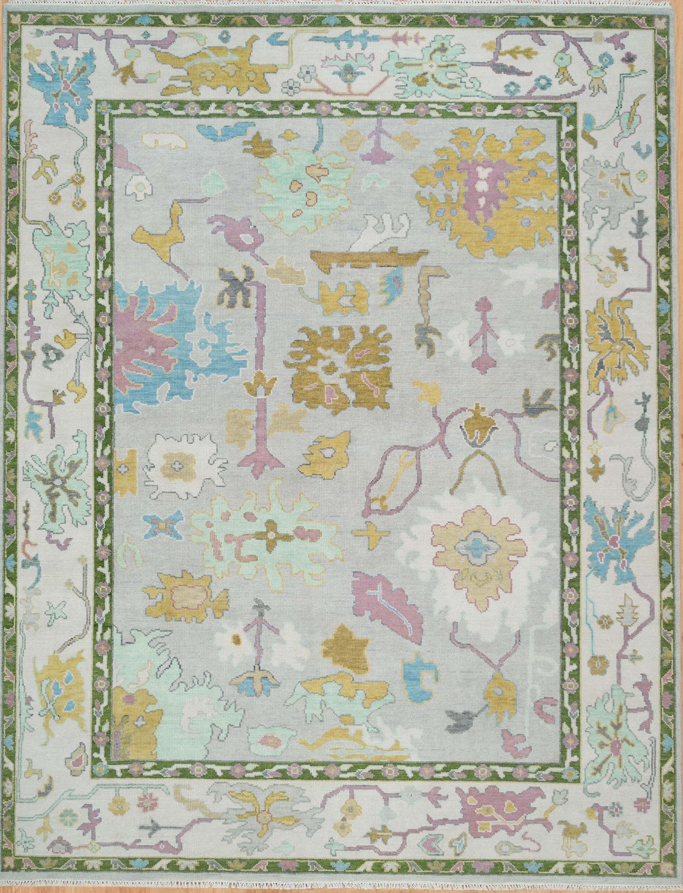 Handknotted Wool Oushak Rug, Floral Oriental Design, 9x12 AR_3660