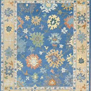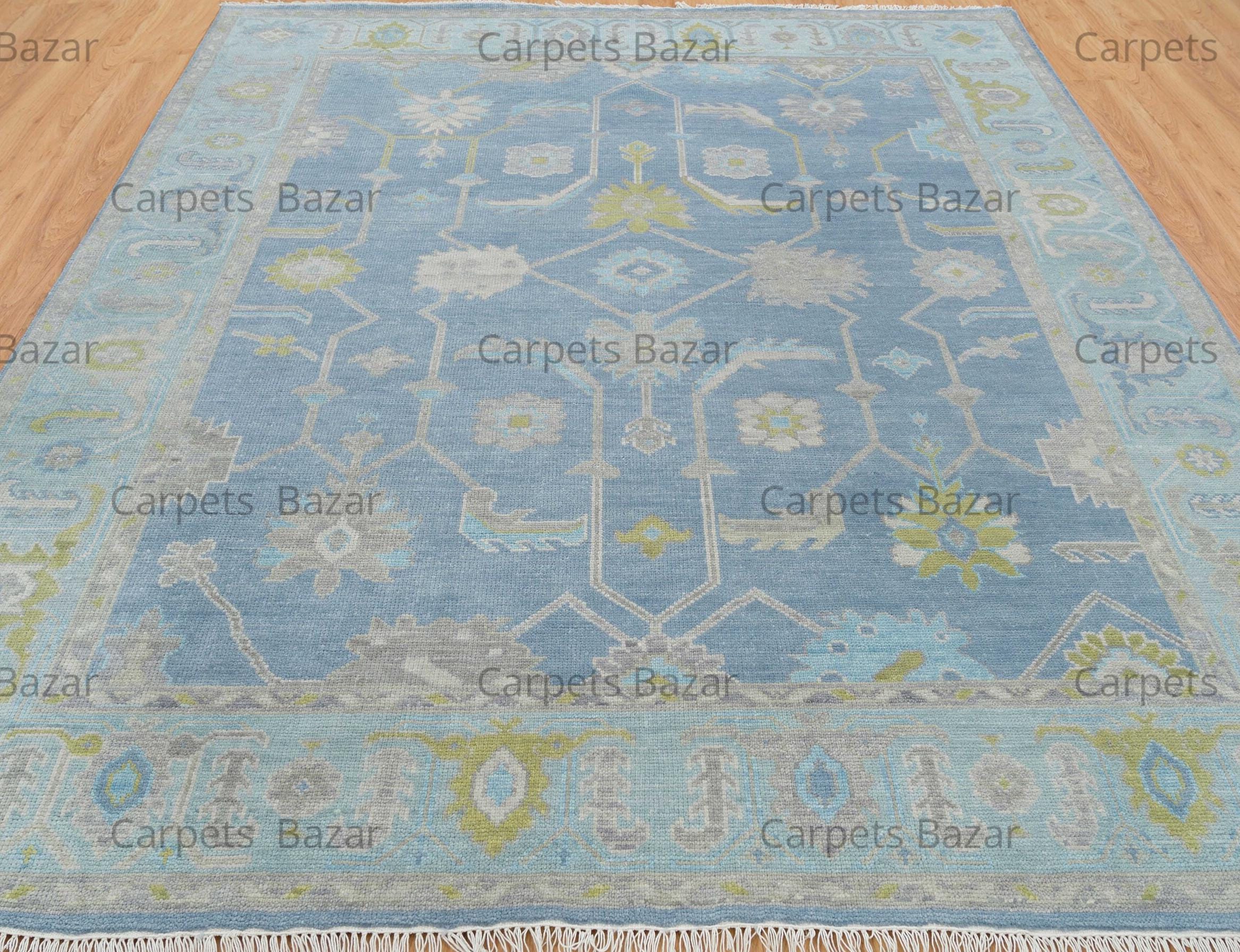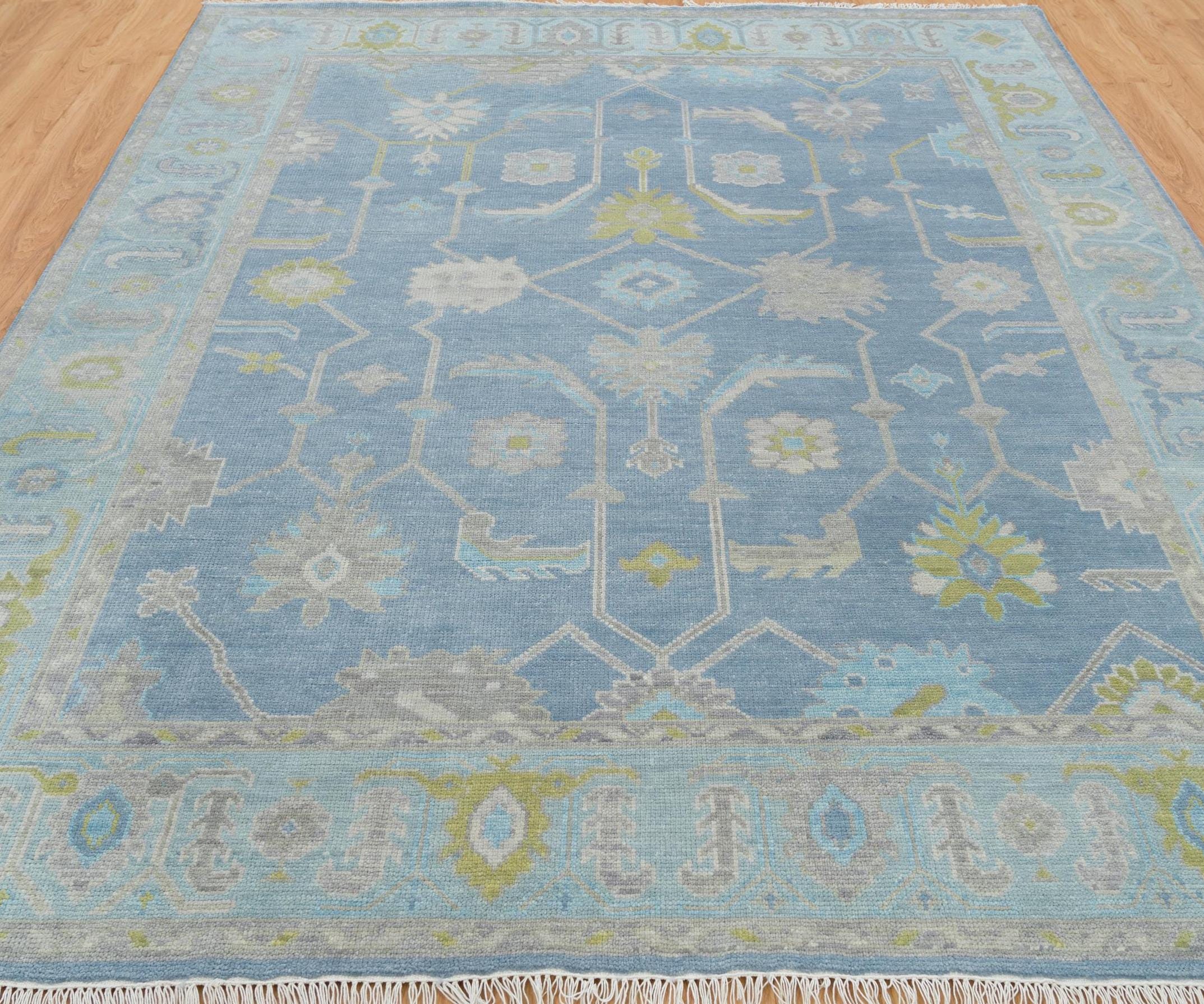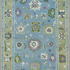 Handwoven Wool Oushak Rug, Light Blue Green Ivory, Custom Area Rug AR_3671