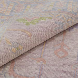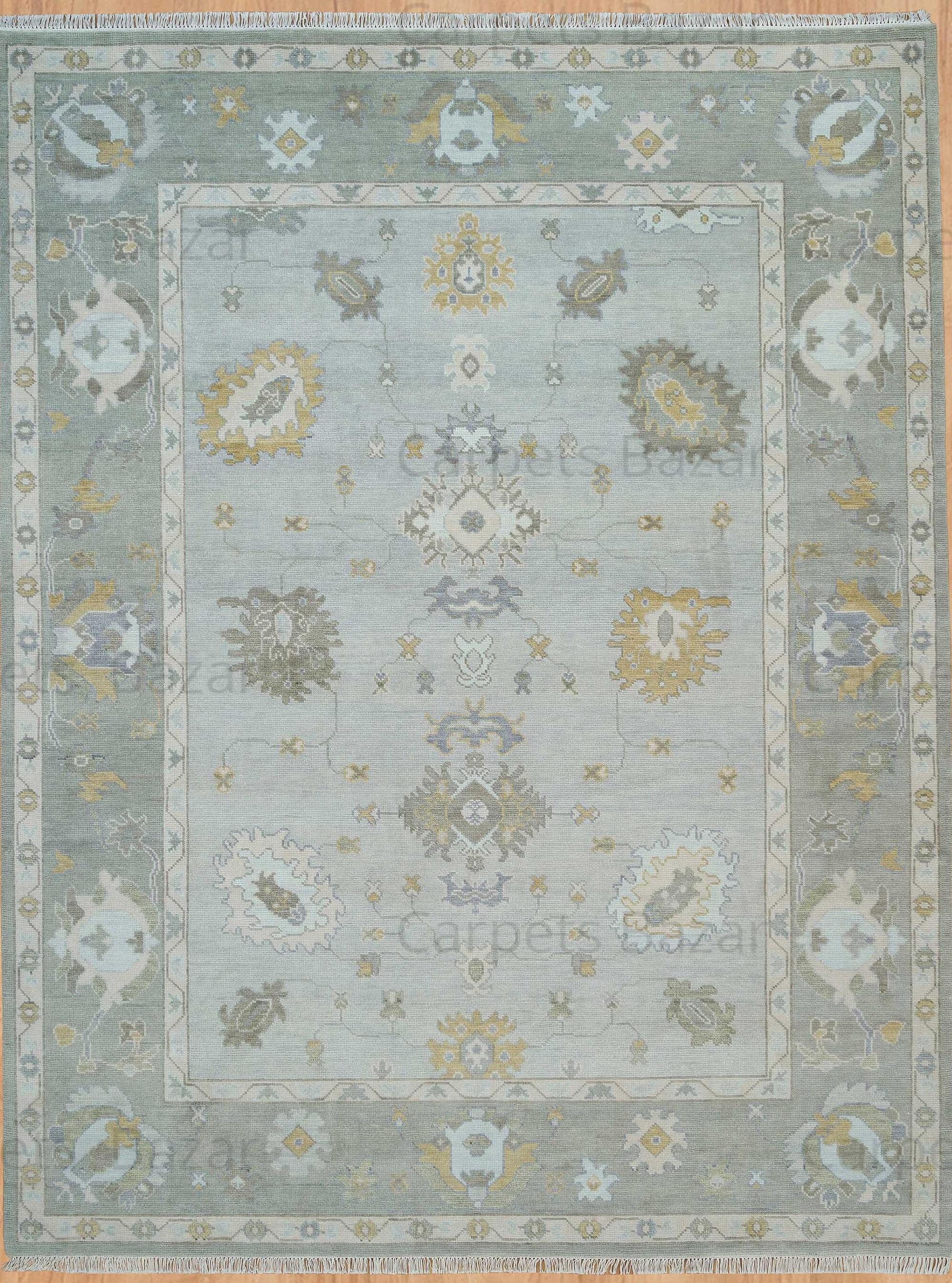 Gray oushak rug handmade in wool. The neutral area rug is available in standard rug sizes like 5x8, 8x10, 9x12 and custom rug sizes too. The modern Turkish rug is pet-friendly, soft and apt as living room rug. We call her Ms. Gray as it is hand woven in soothing dark Gray and light Gray. The gray Oushak area rug is perfect for bedroom, or dining area. Woven from high-quality wool, this handmade neutral area rug features intricate Oriental patterns with subtle cream, gold, and green accents. With a knot density of 20–40 knots per square inch, the Turkish rug has a soft, plush texture that feels wonderful underfoot without being overly dense.