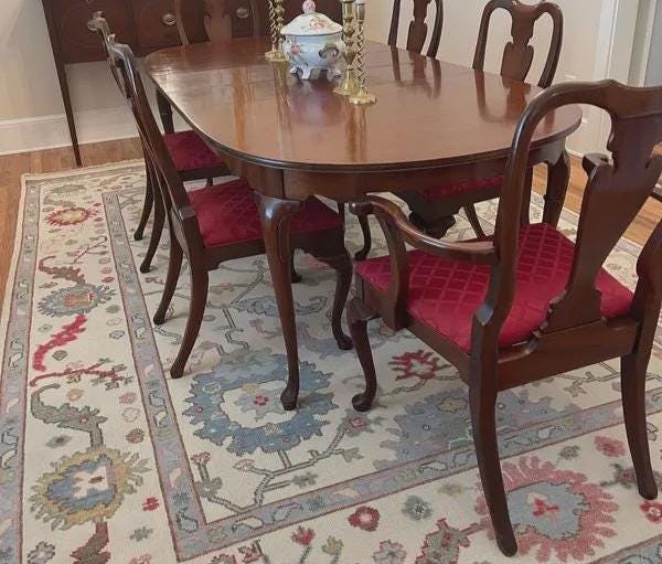 If you’re looking for a Turkish rug that ties all the home décor elements together, we recommend considering this neutral area rug. Available as a 8x10 or 9x12 Oushak rug (along with all other sizes), it is ideal for a dining room with warm wooden furniture but would look just as good in the bedroom. The wool rug is handmade with top-notch quality wool and has about 20 to 40 knots per square inch. So it's plush and thick, but not too dense.