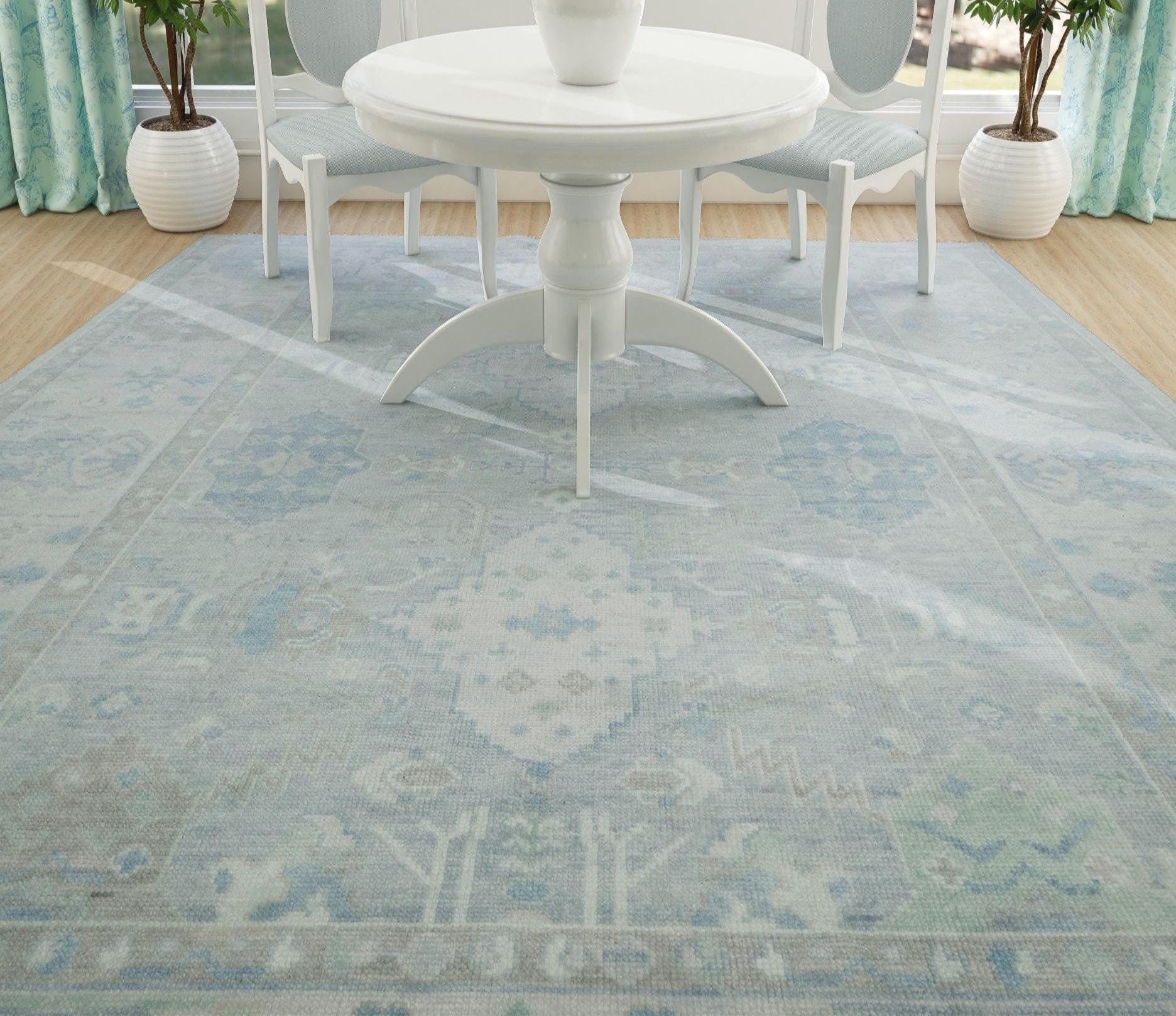 Oushak Rug Blue White Gray, Muted Neutral Decor Wool Rug 8x10, Area Rug 9x12 Large, Pale Turkish Rug 6x9 Handknotted: Saint Anne ARN_023