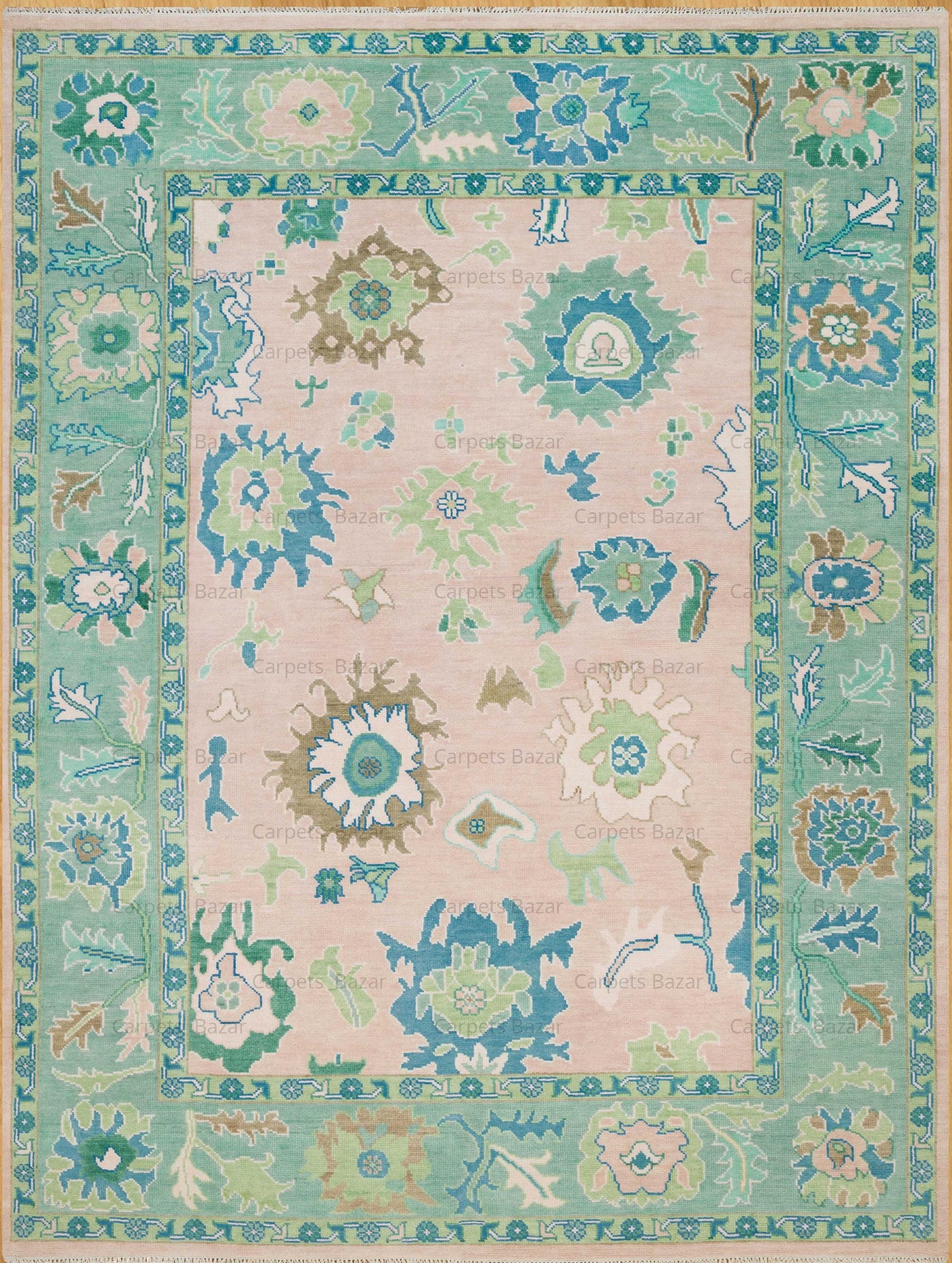 Handmade Wool Oushak Rug, Pink, Blue & Green Floral, Large Area Rug AR_3791