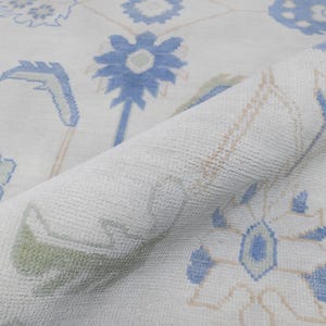 Hand-Knotted Wool Oushak Rug, Blue Ivory Floral, Turkish Carpet AR_3315