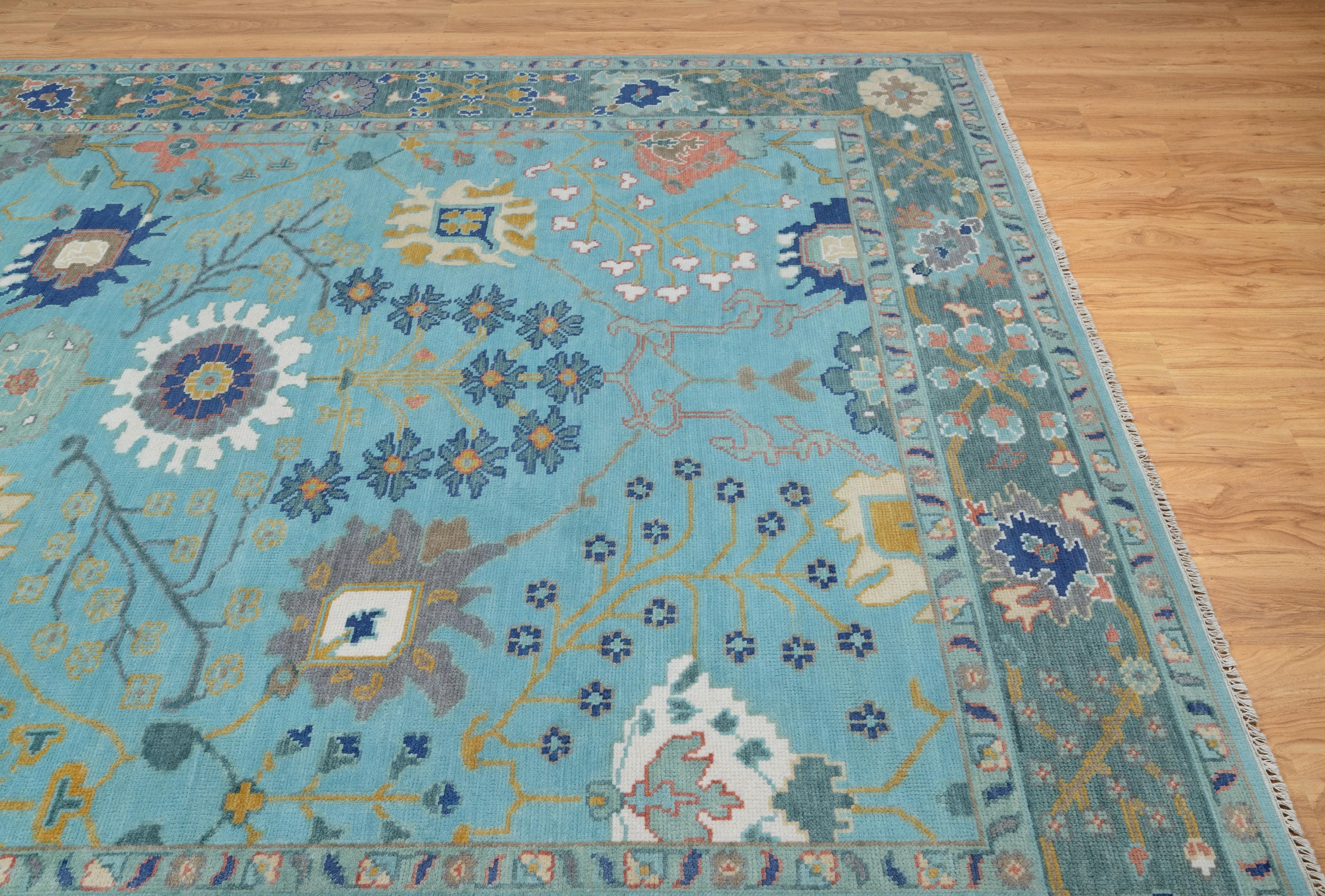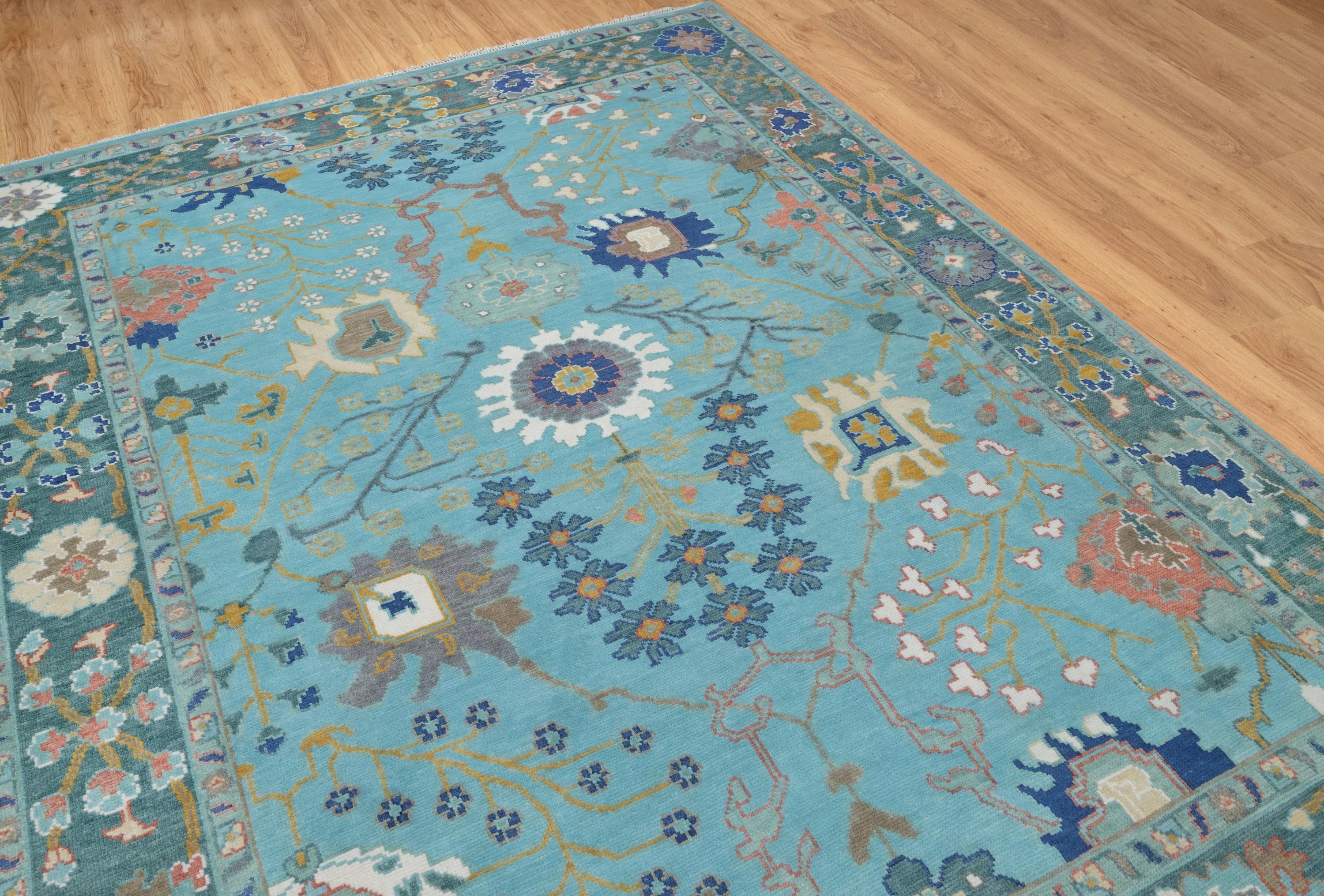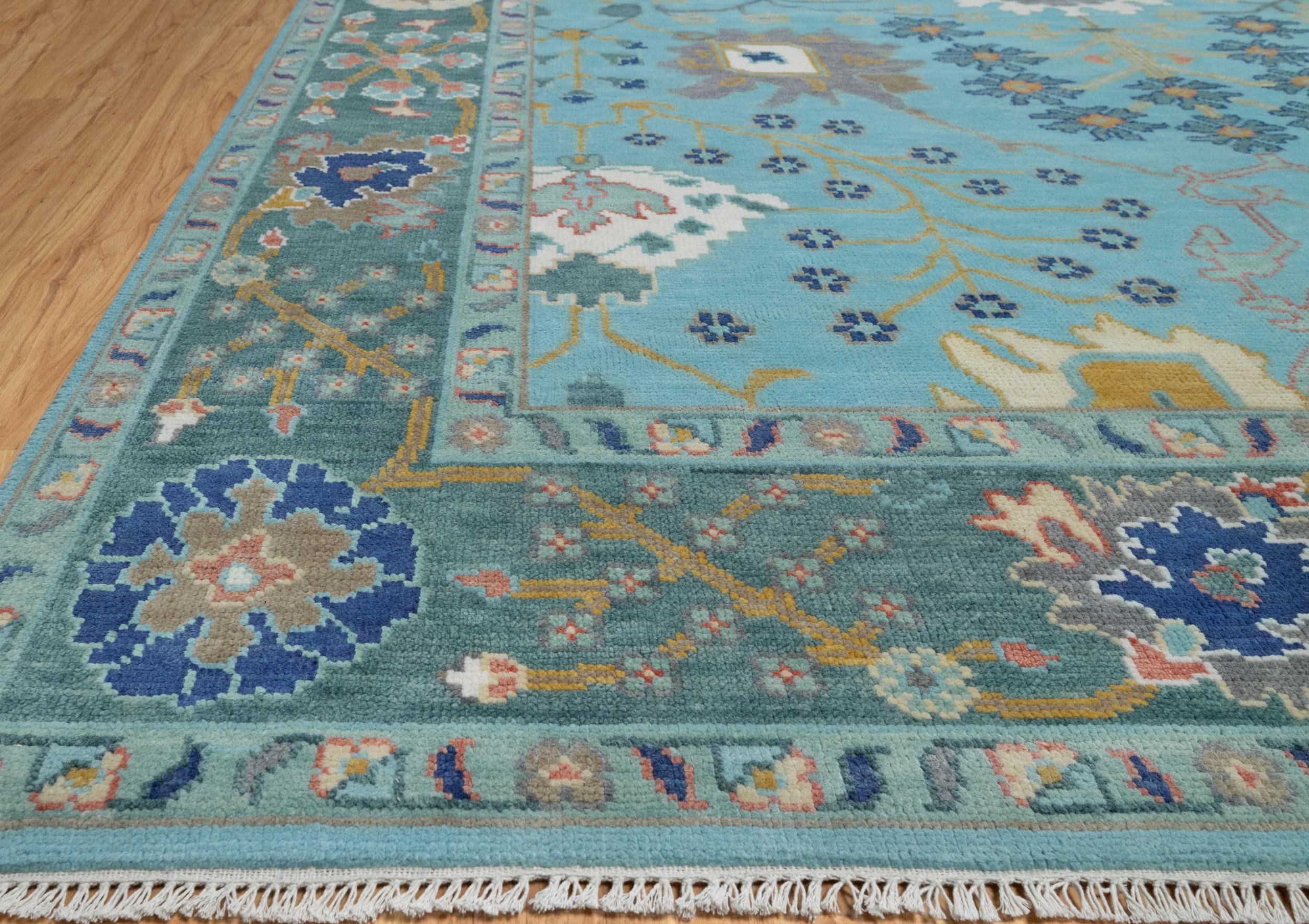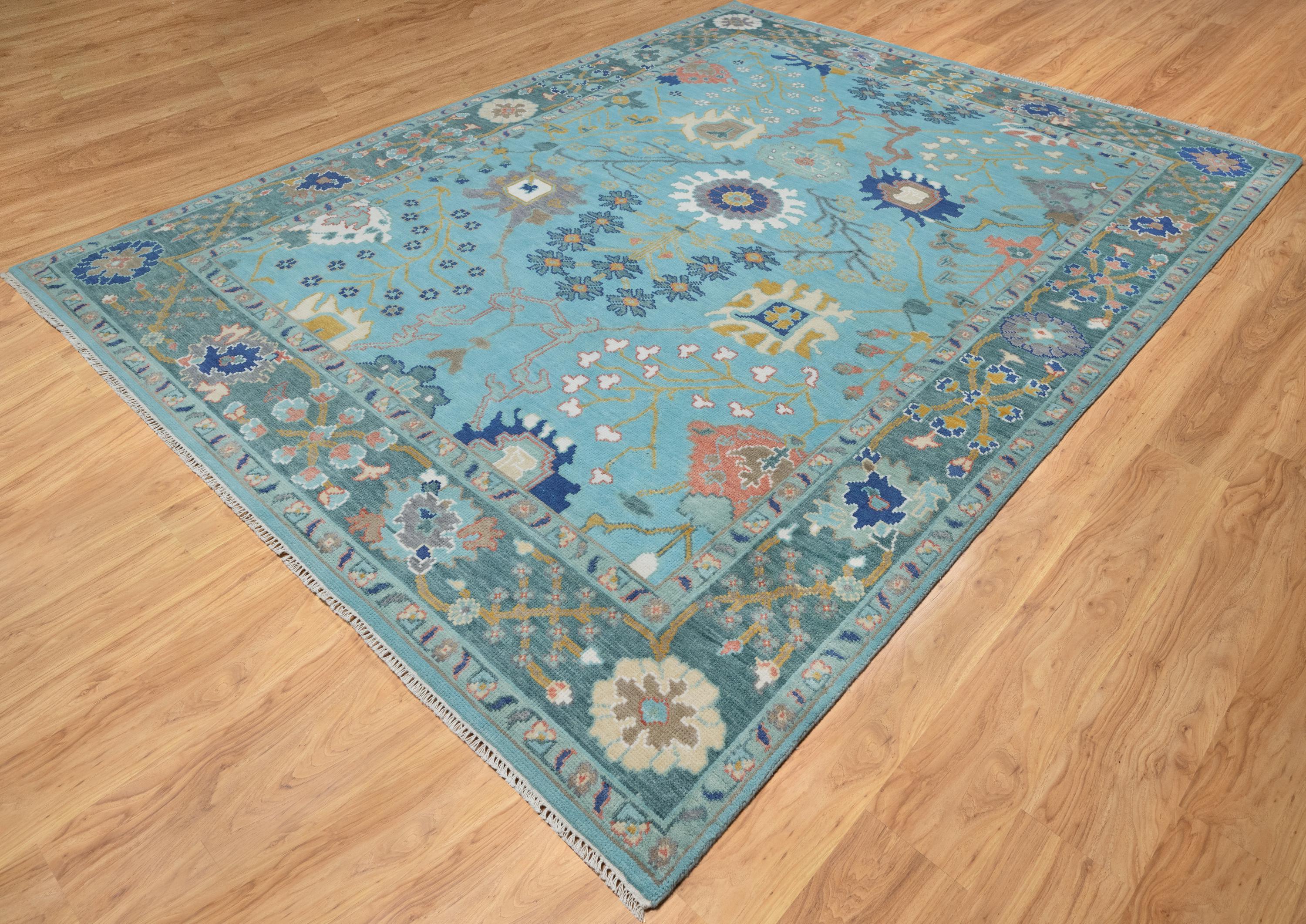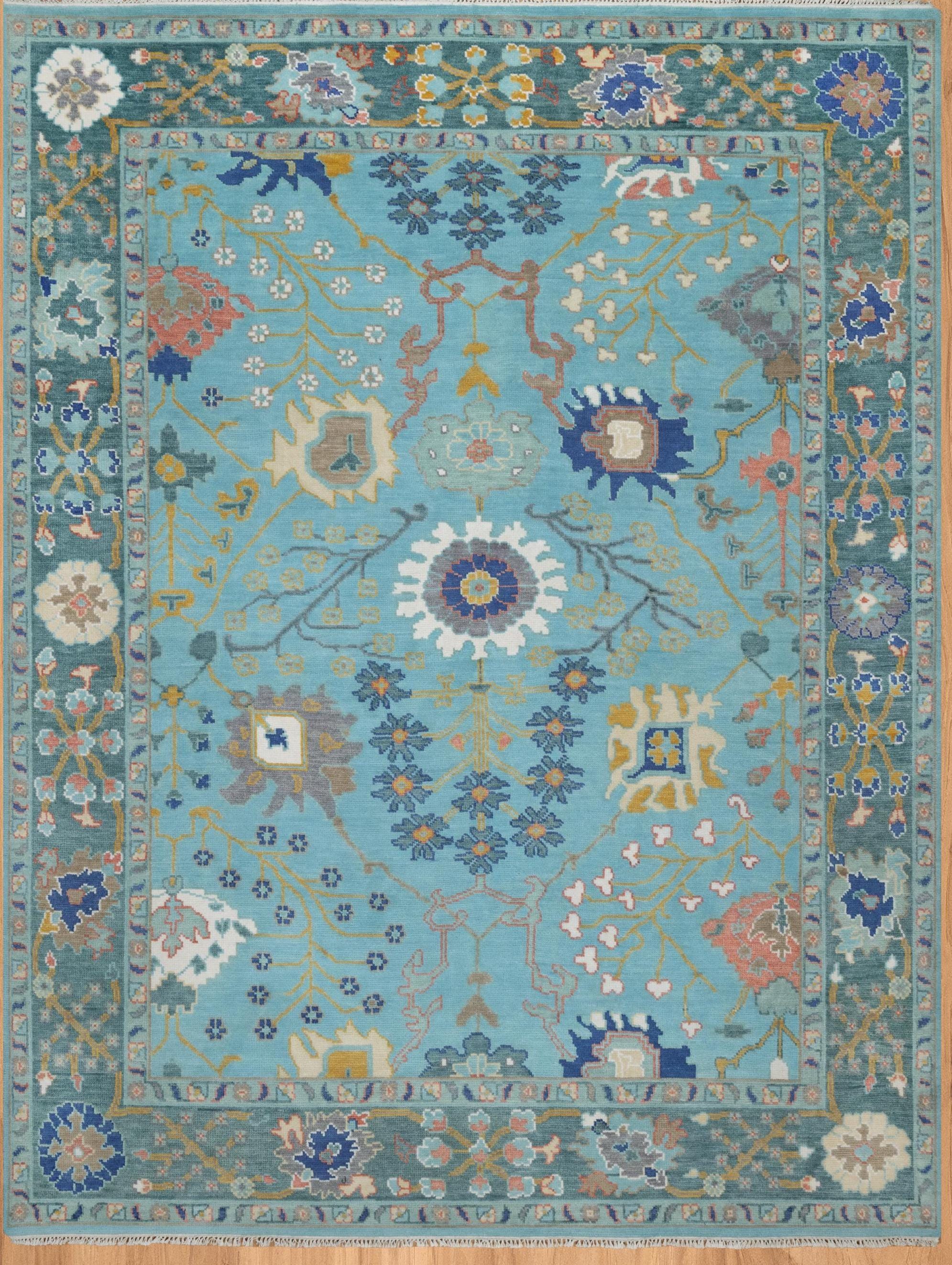 Blue Oushak Wool Rug, Floral Area Rug, Coastal Farmhouse Decor AR_3319