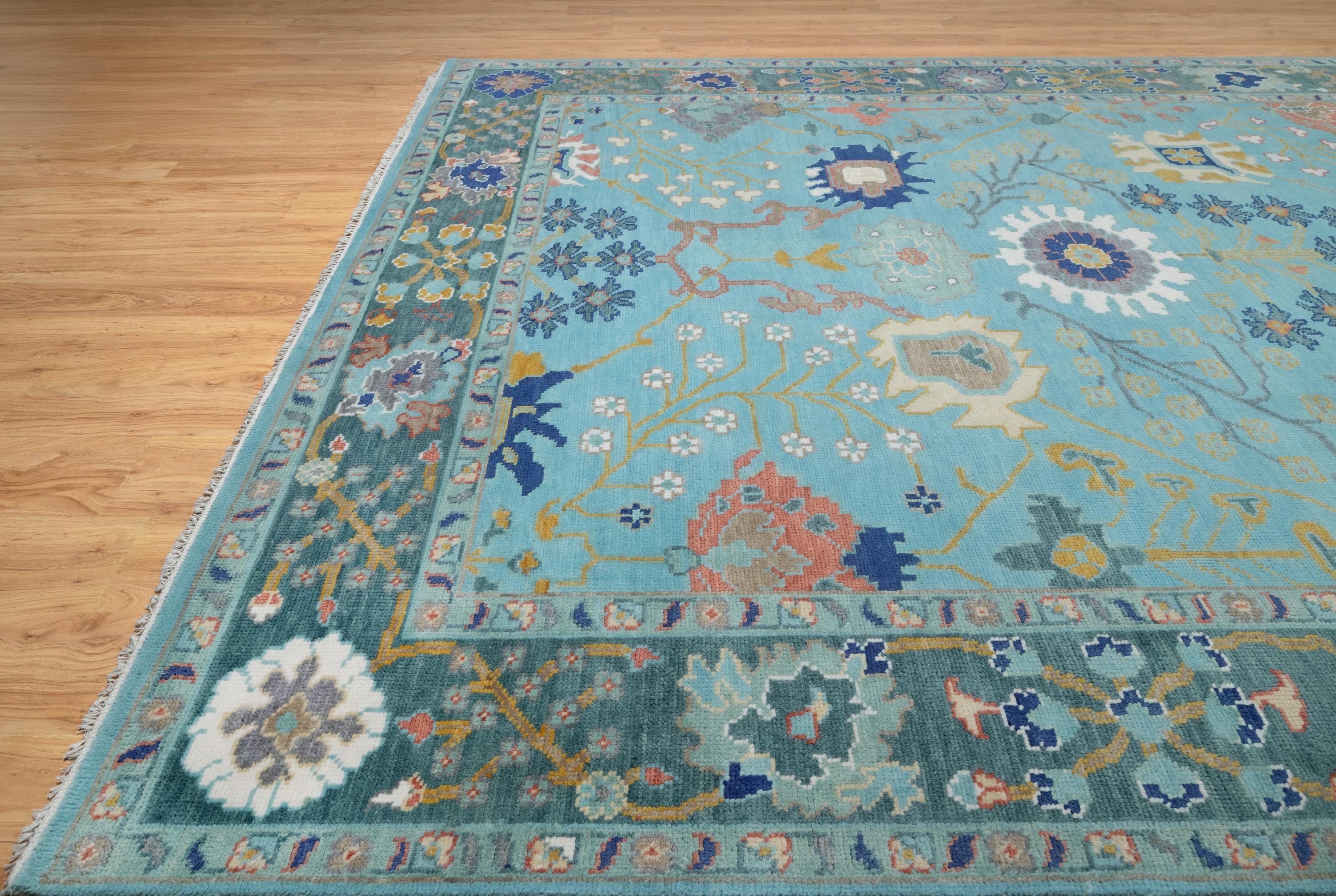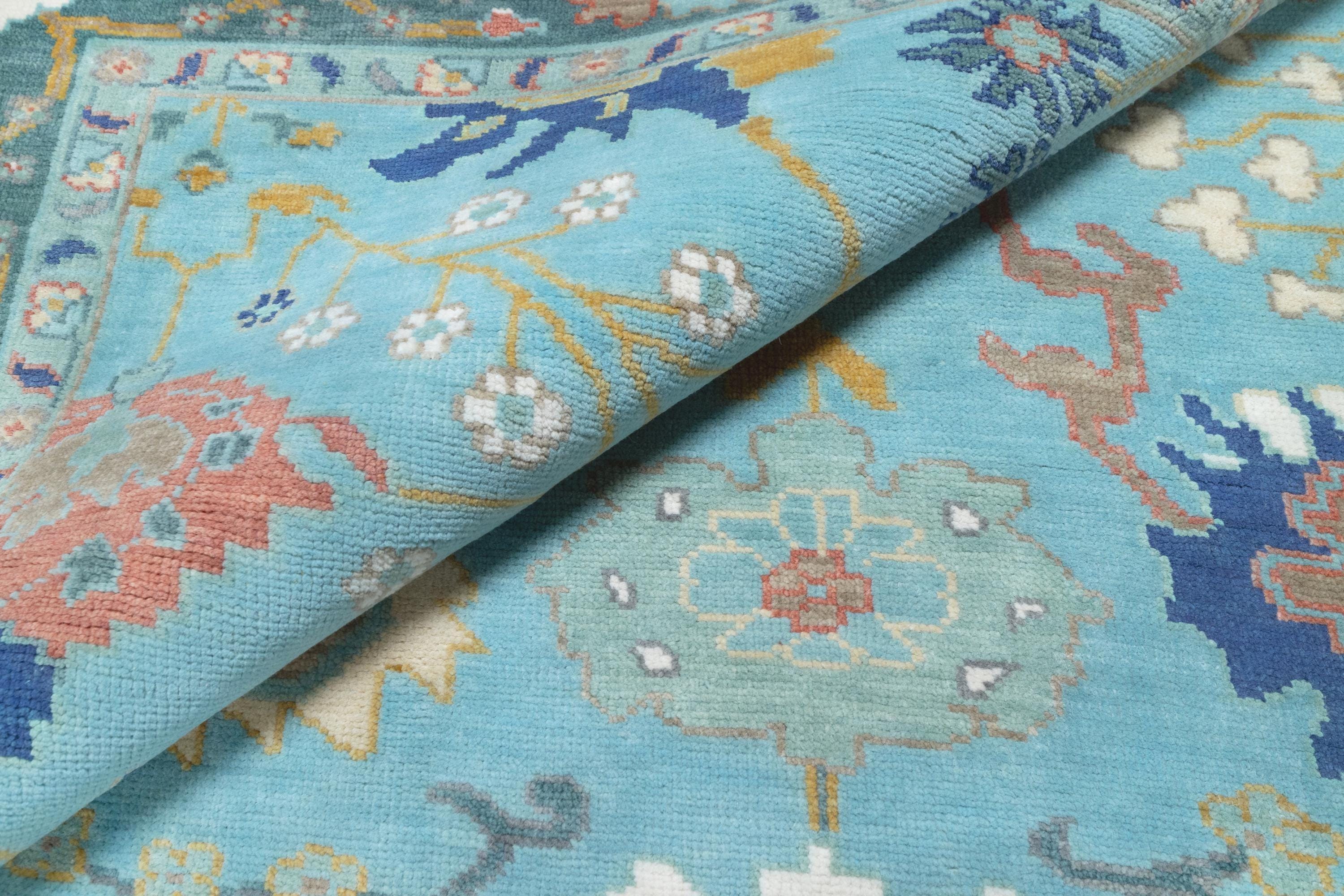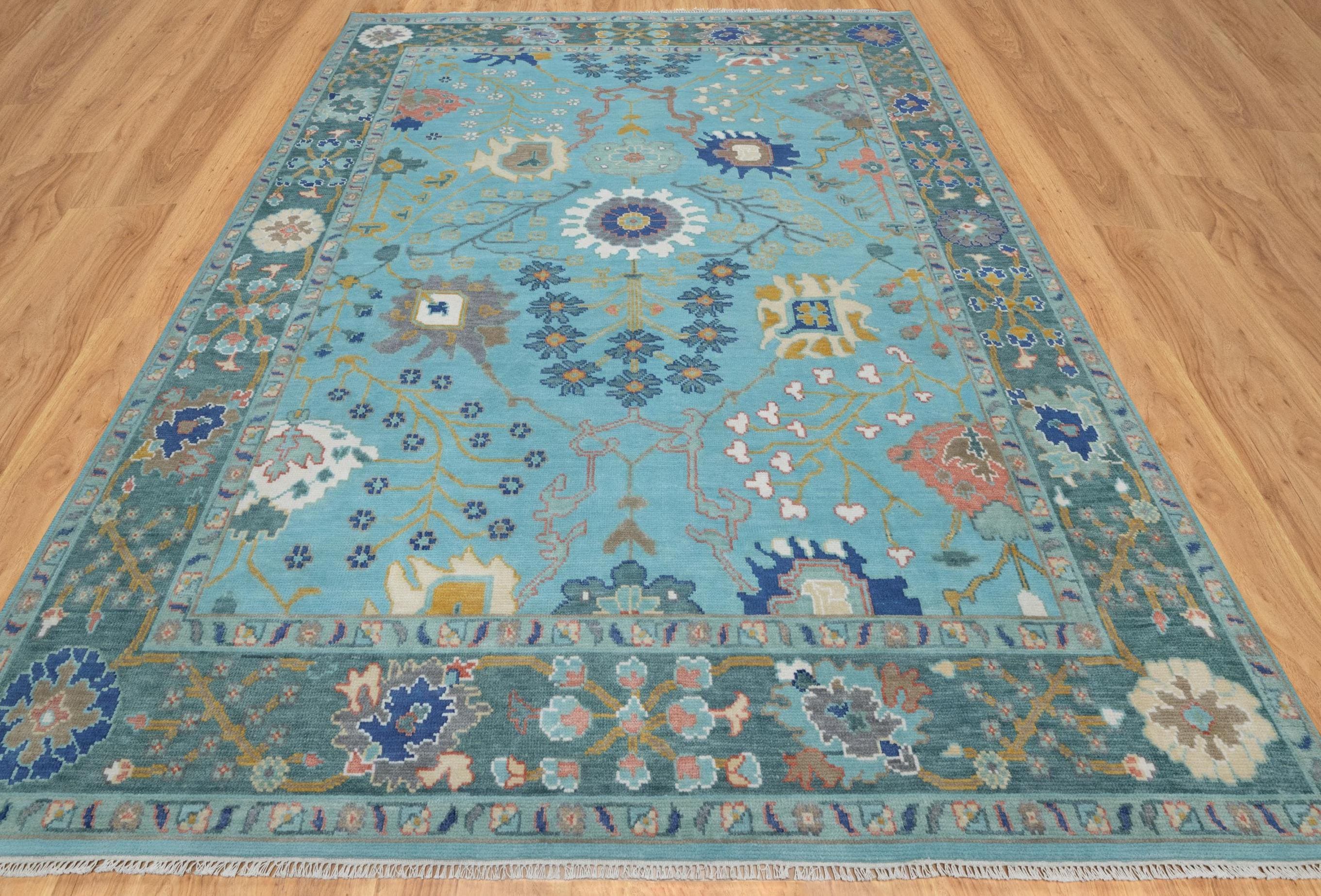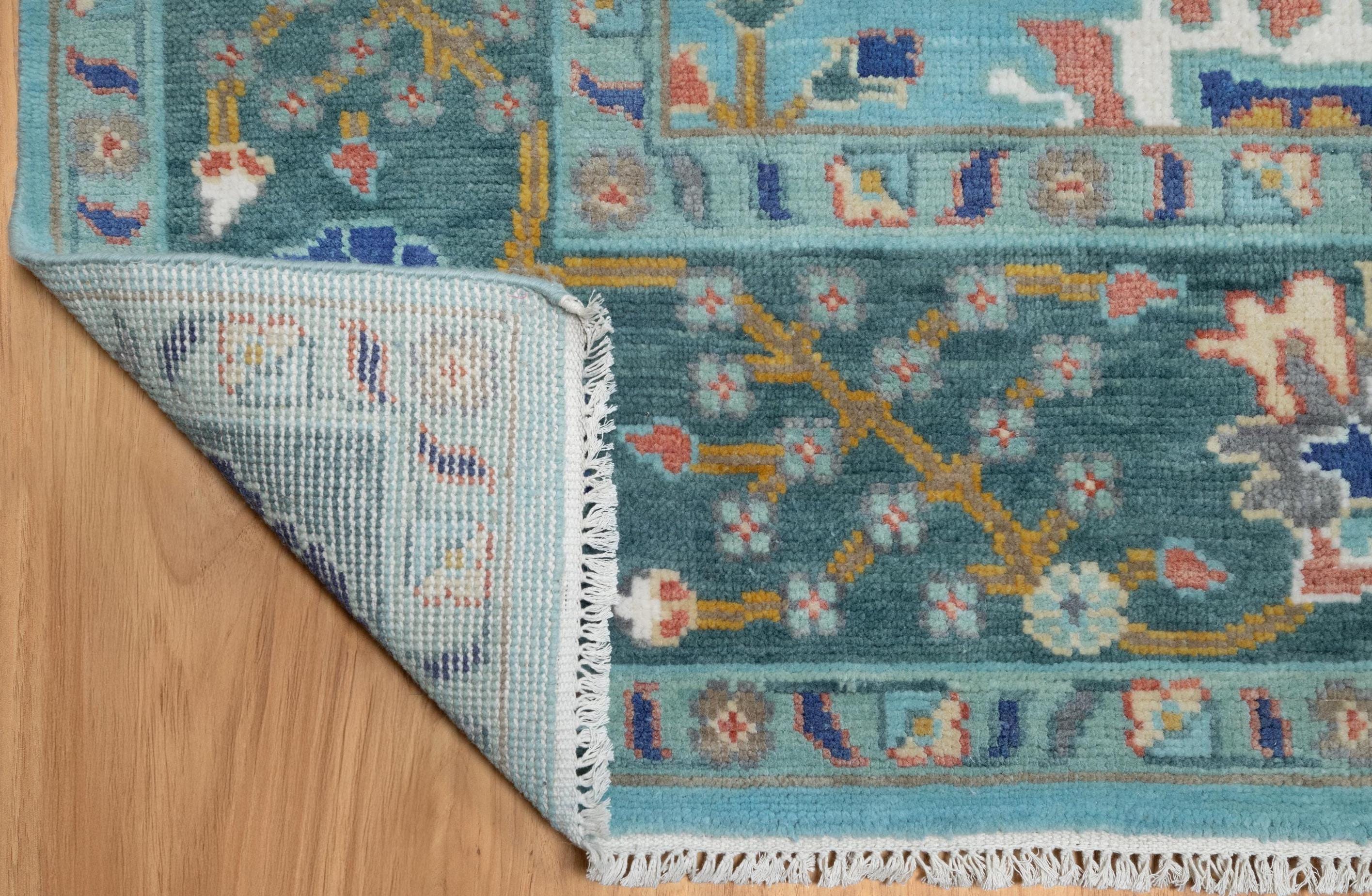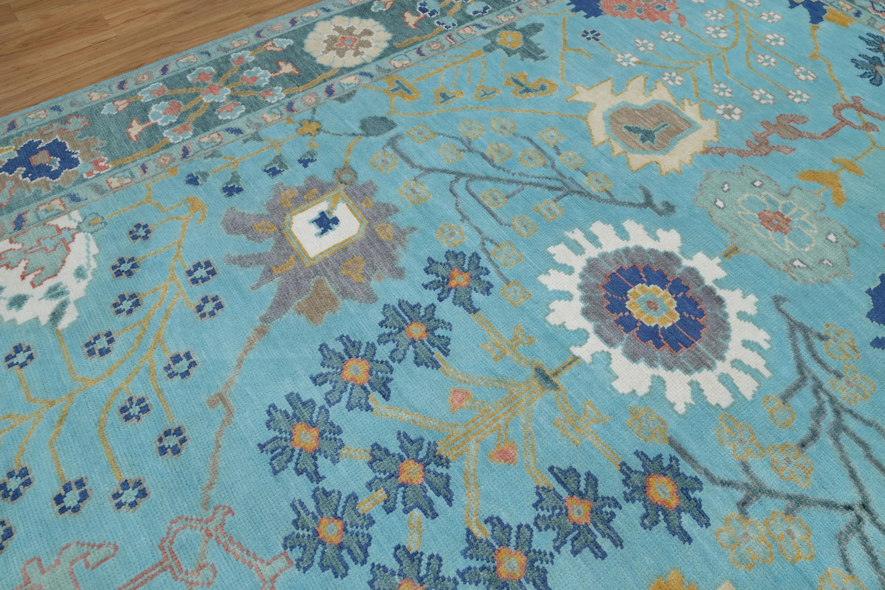Blue Oushak Wool Rug, Floral Area Rug, Coastal Farmhouse Decor AR_3319
