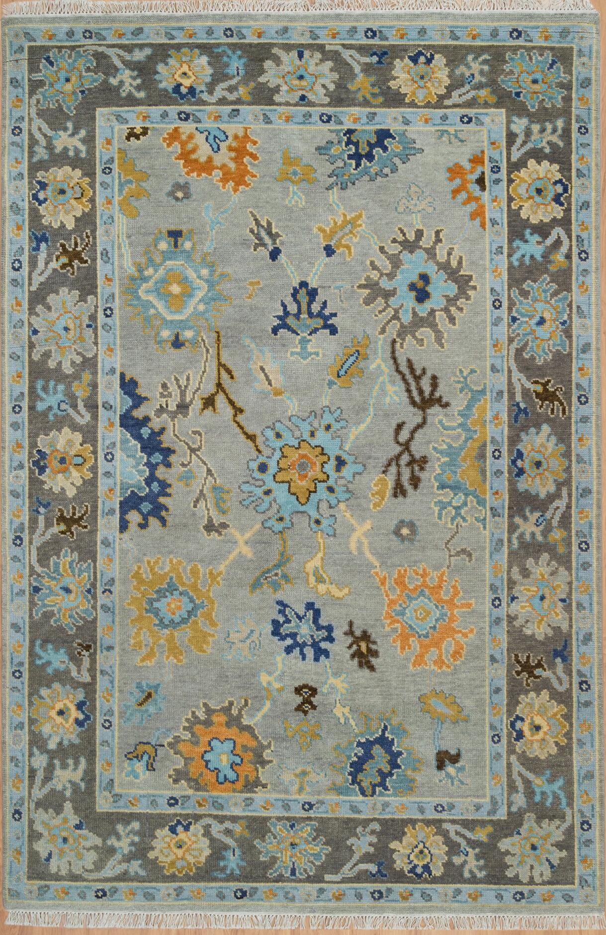 Handmade Silver Gray Oushak Wool Rug, Blue Orange Accents AR_3611