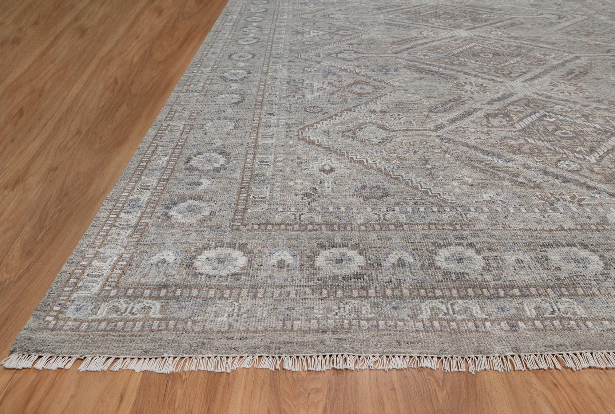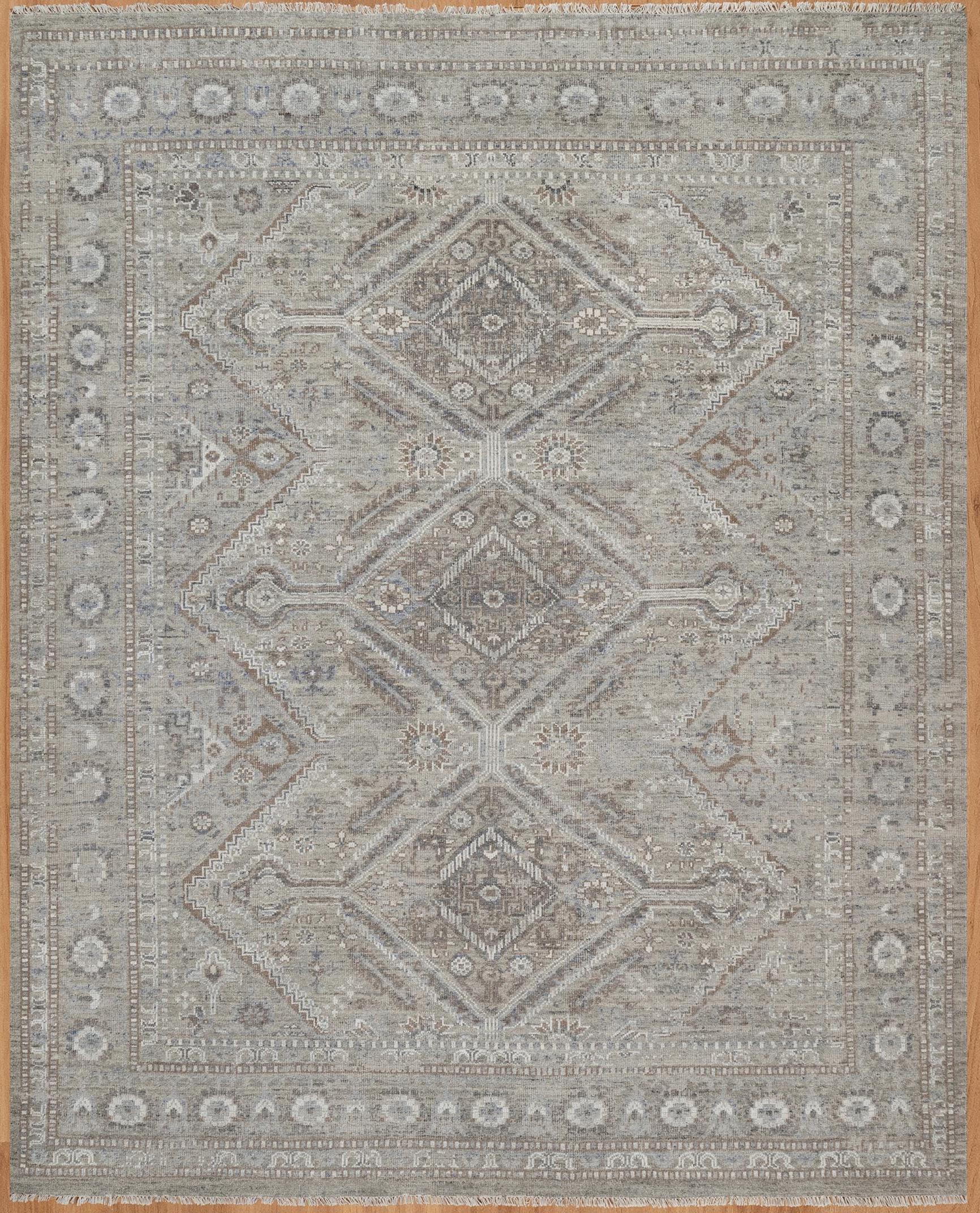 Hand Knotted Wool Rug, Traditional Gray Diamond Medallion Design Rc_1019