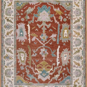 Handmade Wool Oushak Rug, Gray Blue Pink Floral, Custom Size AR_3300