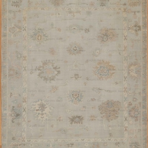 Handmade Turkish Wool Oushak Rug, Sage Green & Rust Brown, Vintage Style HL_320