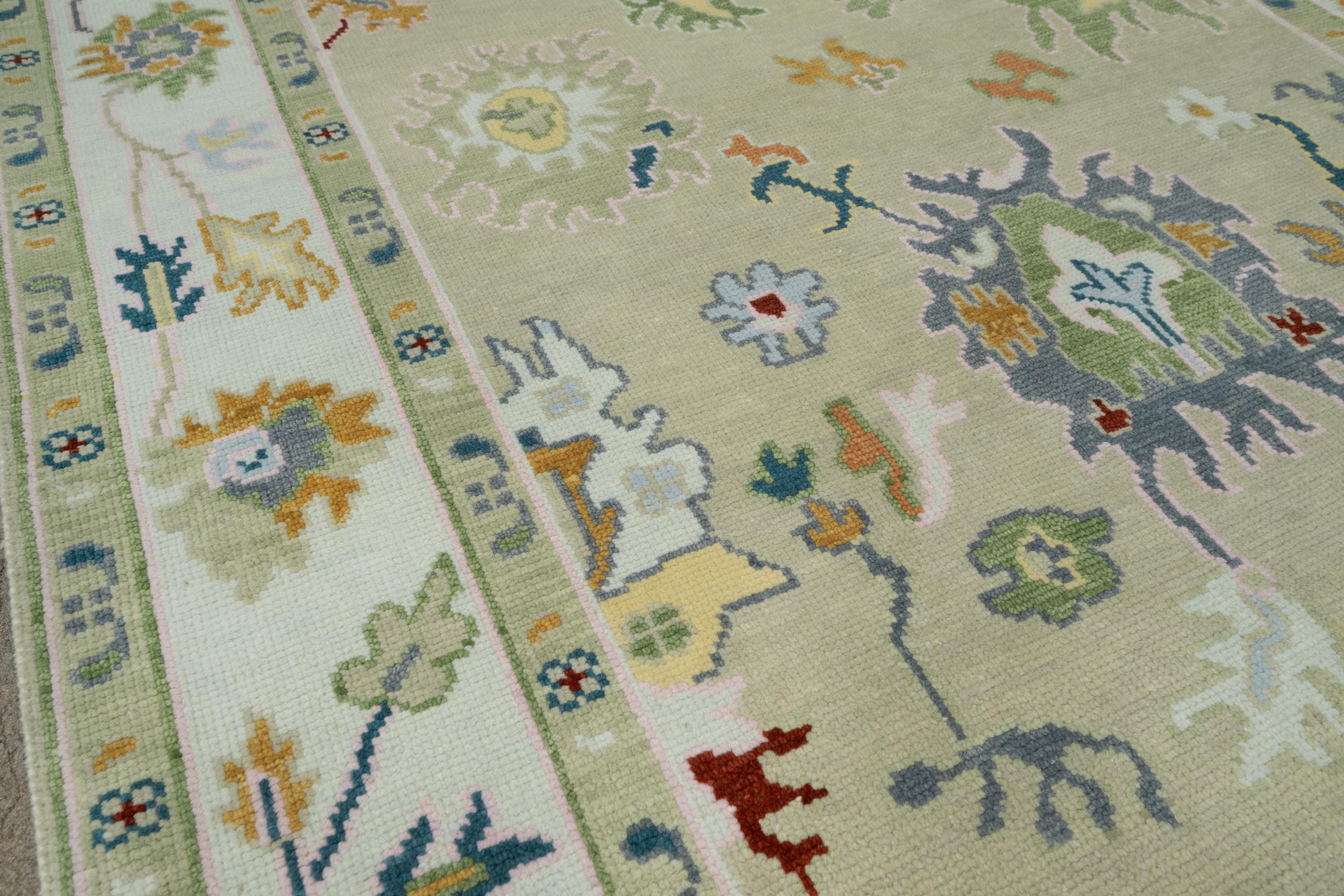 Handmade Oushak Wool Rug – Sage Green Floral Oriental Carpet AR_3871