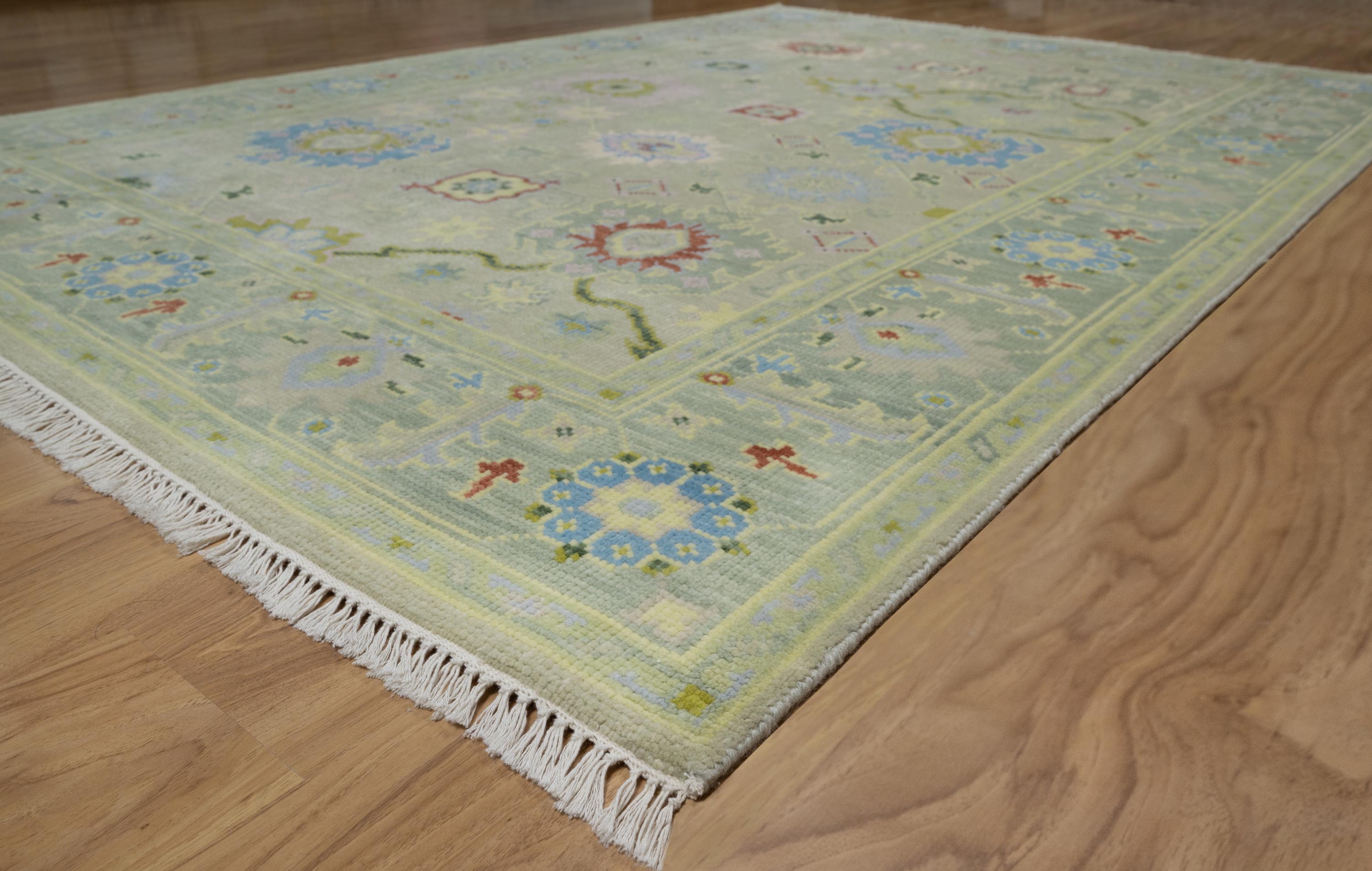 Crafted from premium quality wool using traditional Oushak hand-knotting techniques for exceptional durability and comfort.