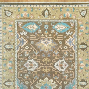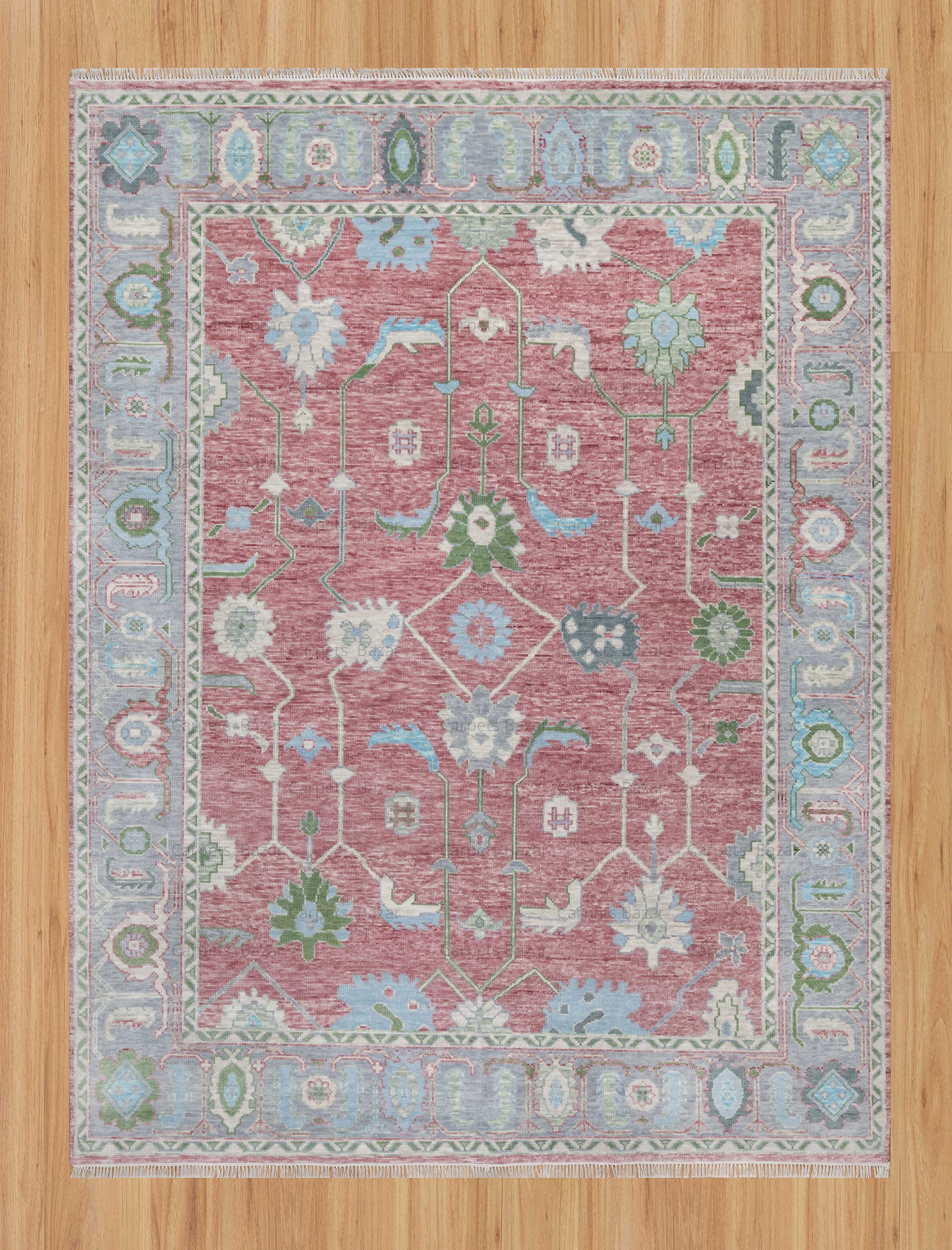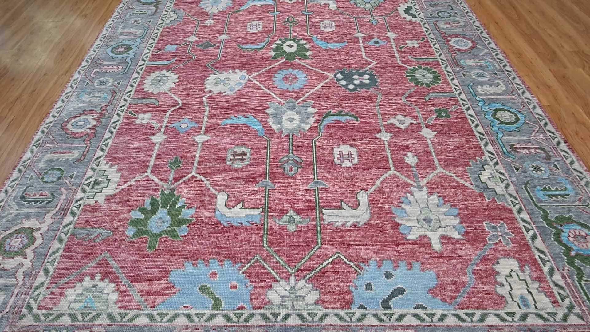 Oushak Rug 9x12 Red-Pink, Gray Blue Green Area Rug Farmhouse Decor, Floral Modern Large Wool Rug, Handmade Turkish Carpet 9x12: ARN_024