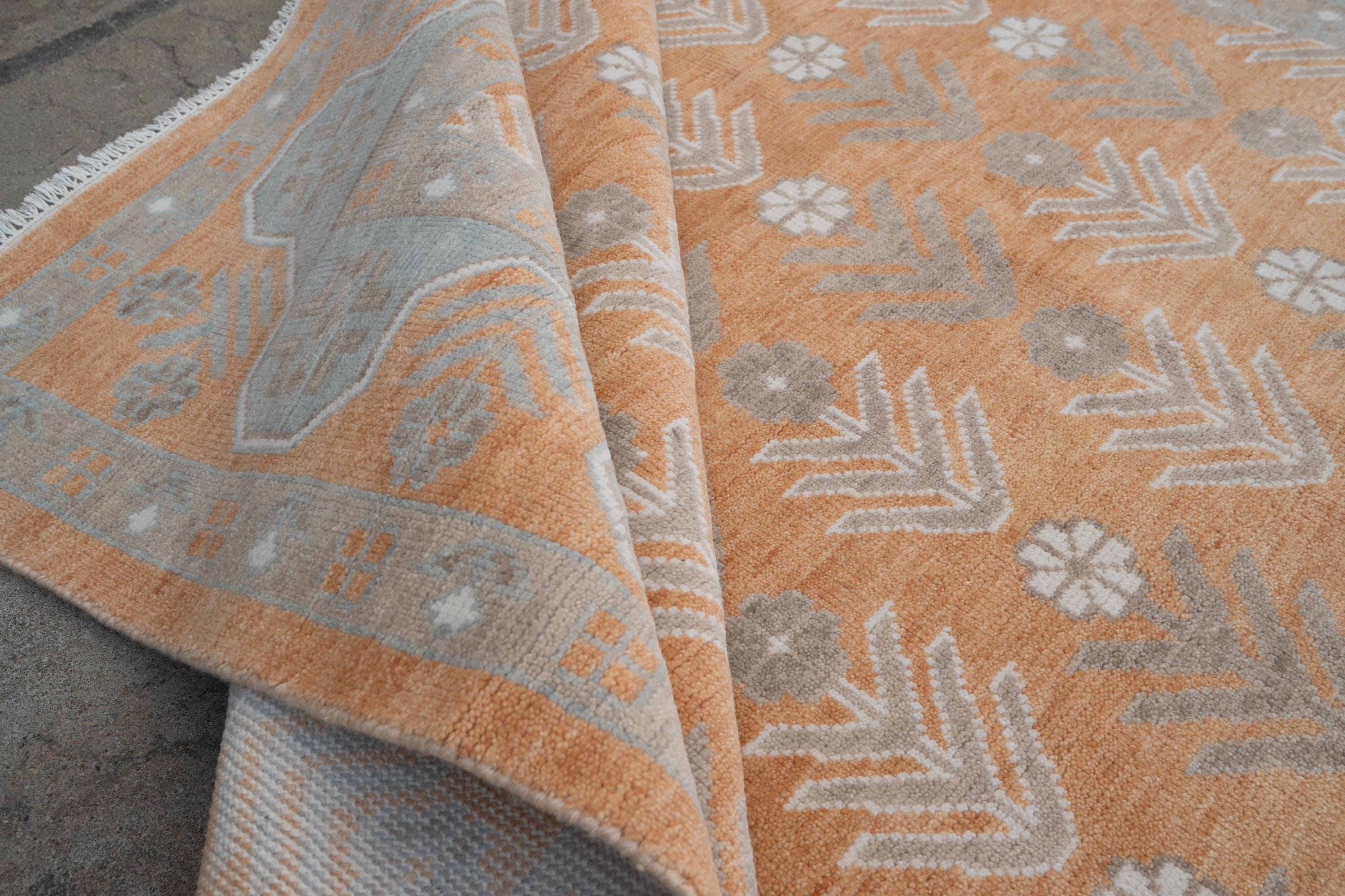 Handmade Oushak Wool Area Rug - Peach Orange Gray Traditional Geometric Floral Oriental Home Decor Carpet :Sunset Breeze AR_3868