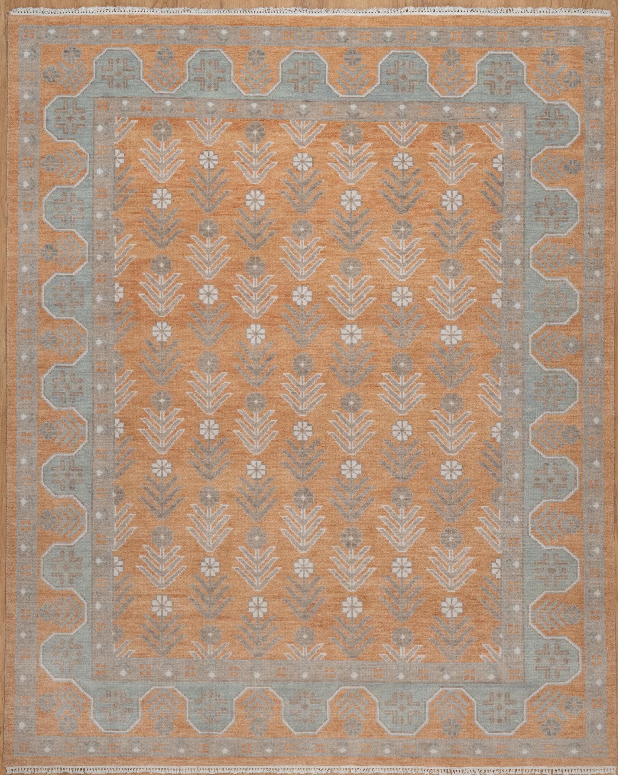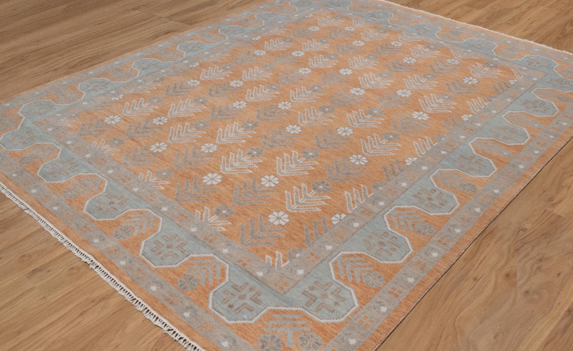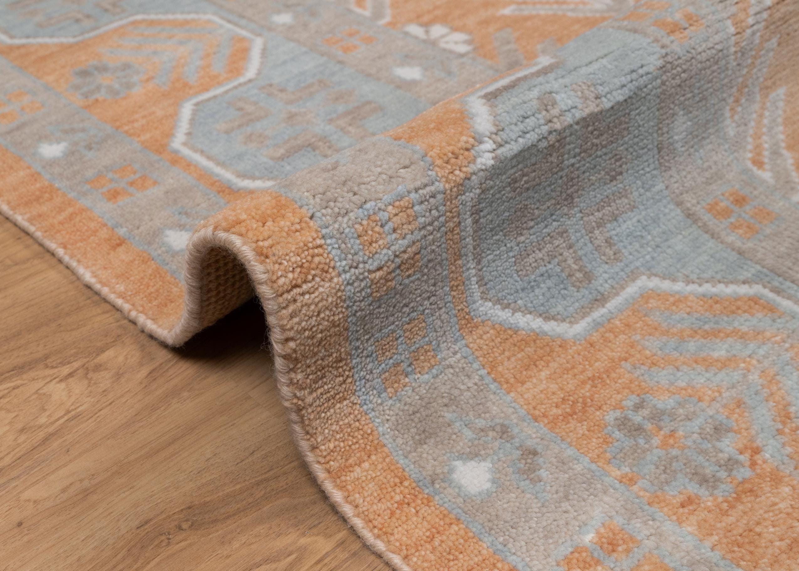Crafted from premium quality wool using traditional Oushak hand-knotting techniques for exceptional durability and comfort.