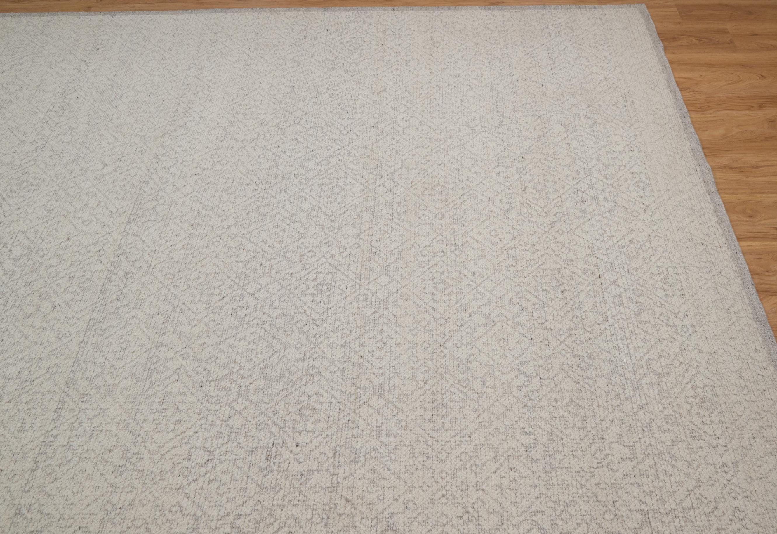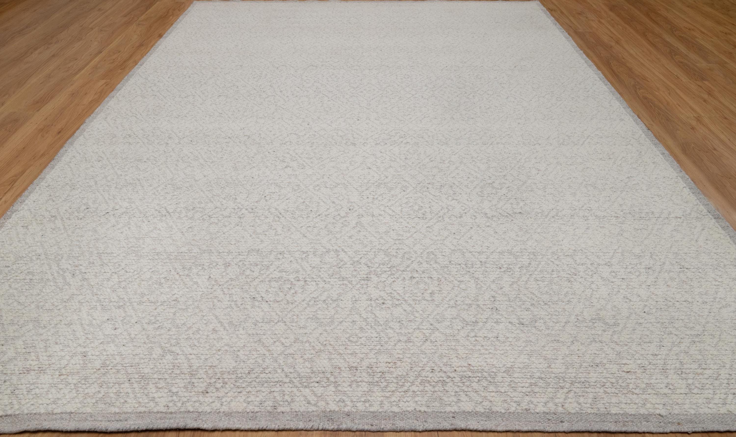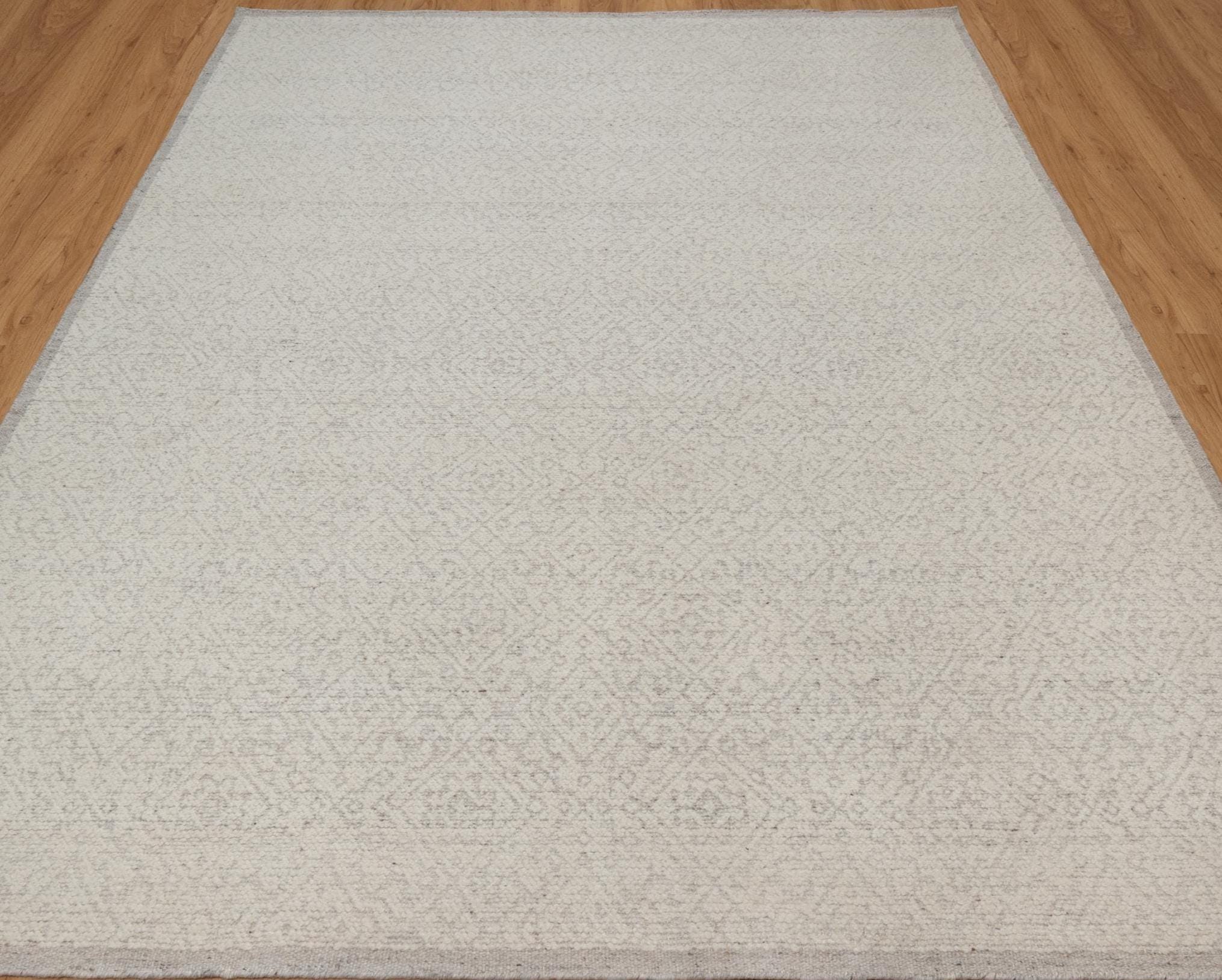 Handmade Flatweave Wool Area Rug - Ivory Cream Subtle Diamond Pattern Contemporary Modern Minimalist Home Decor Carpet OS_122 Ivory