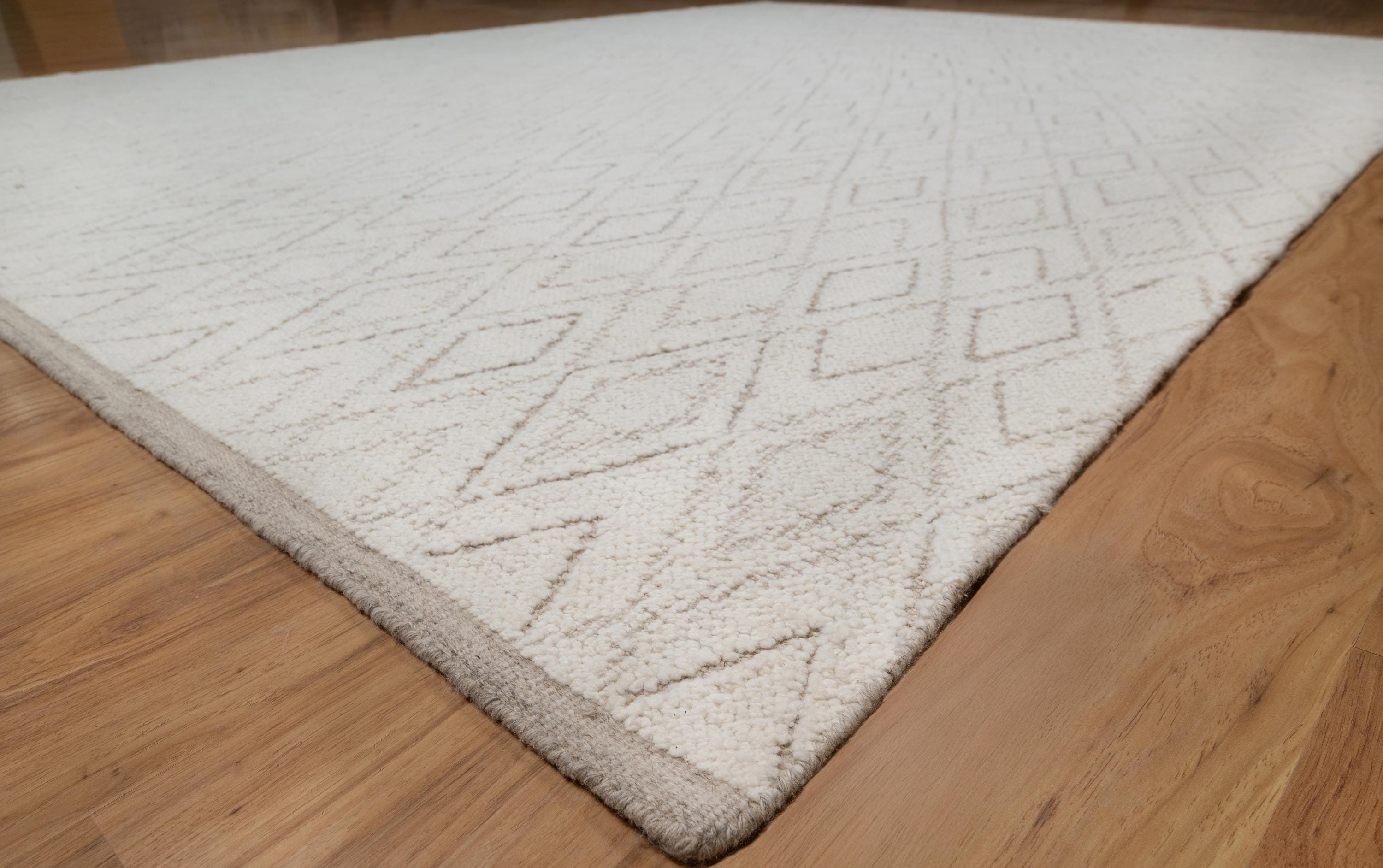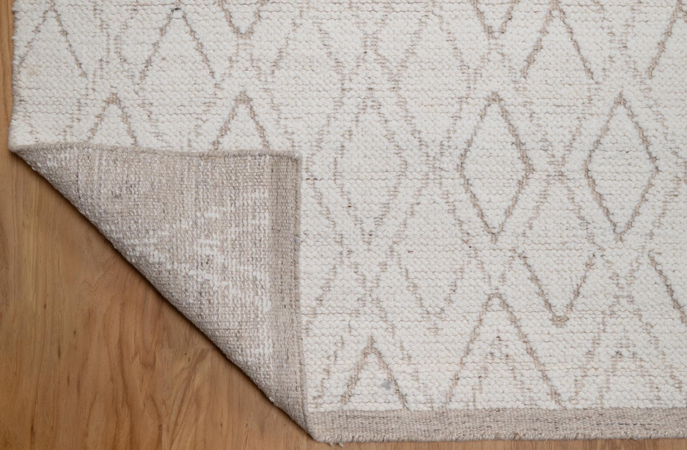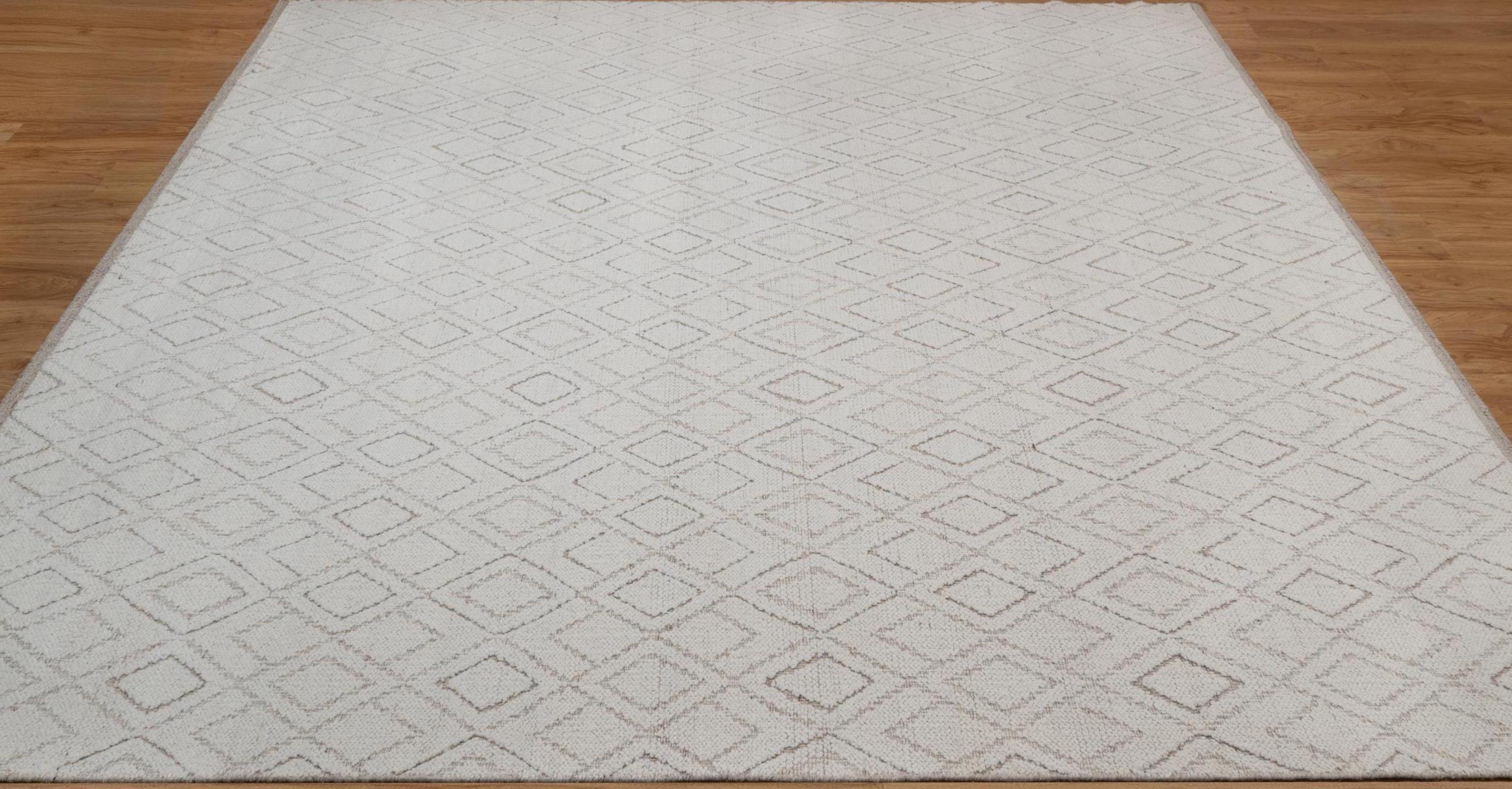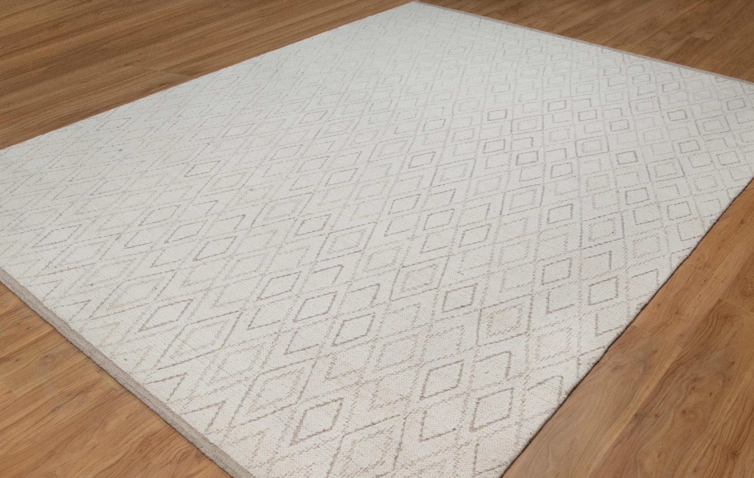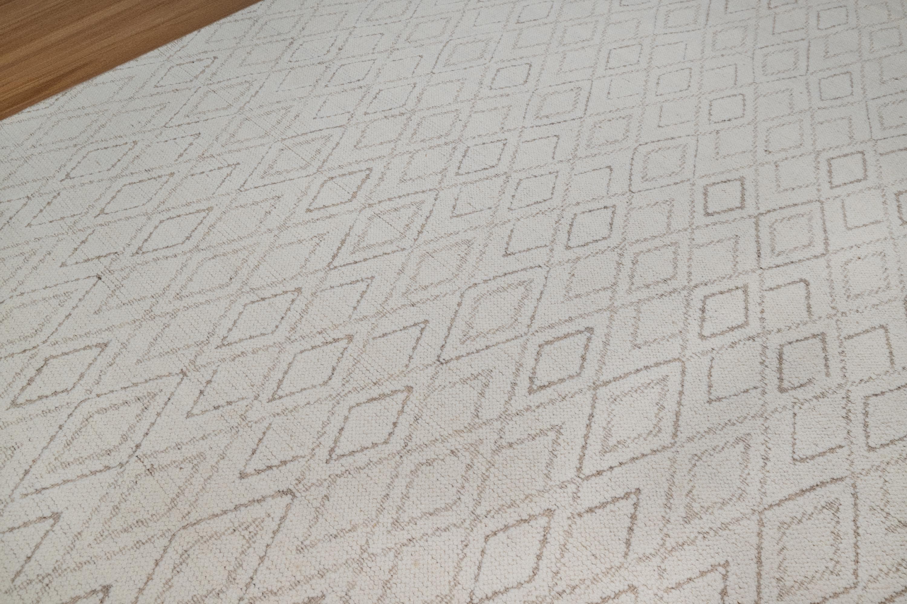 Handmade Kilim Wool Rug: Ivory Cream Diamond Flat Weave, Bohemian Decor OS_72