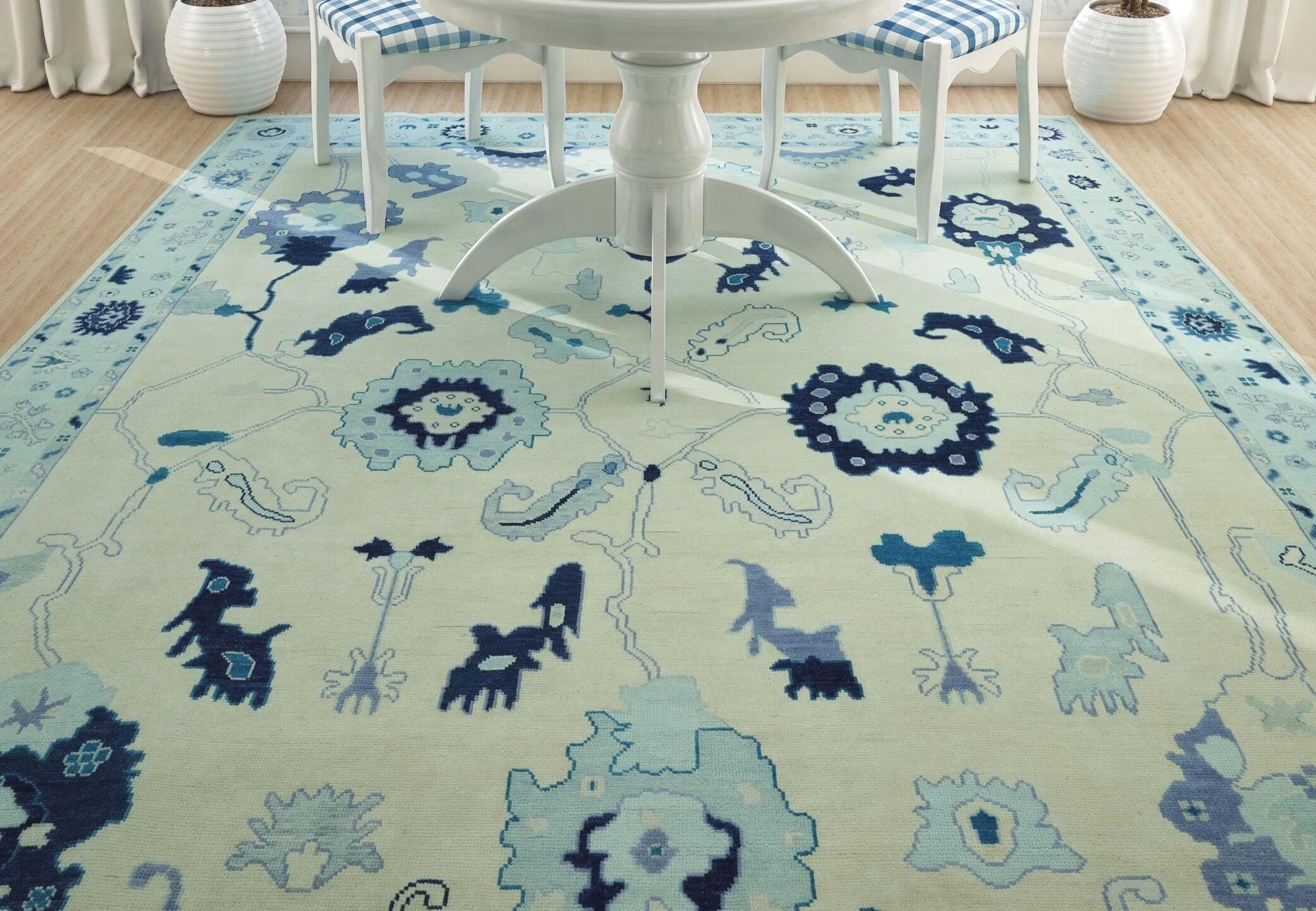Ivory Rug, Oushak Rug Shades of Blue, Powder Blue White Turkish Carpet, Home Decor Area Rug, Wool Rug Custom Size: Whispering Water AR_014